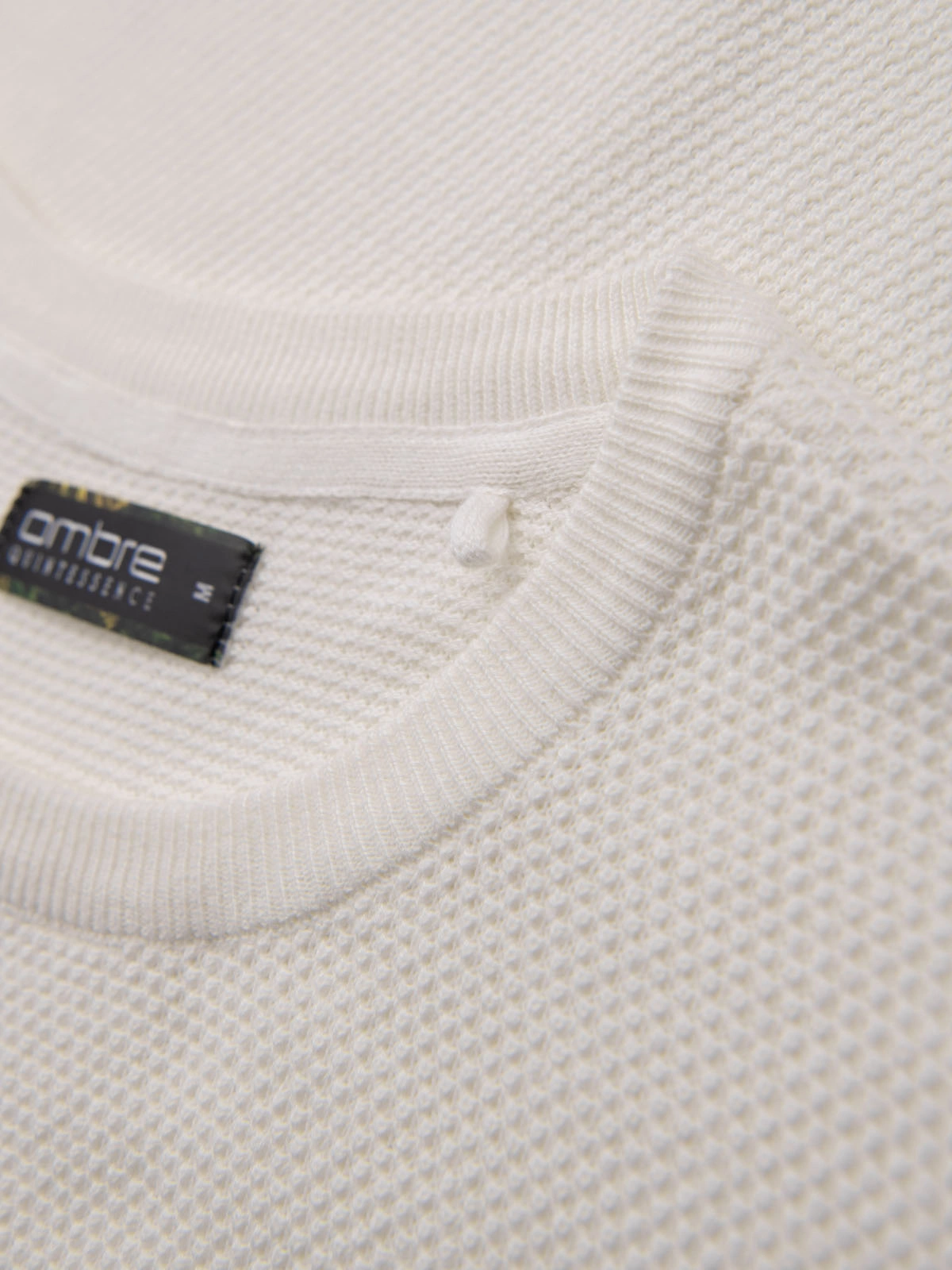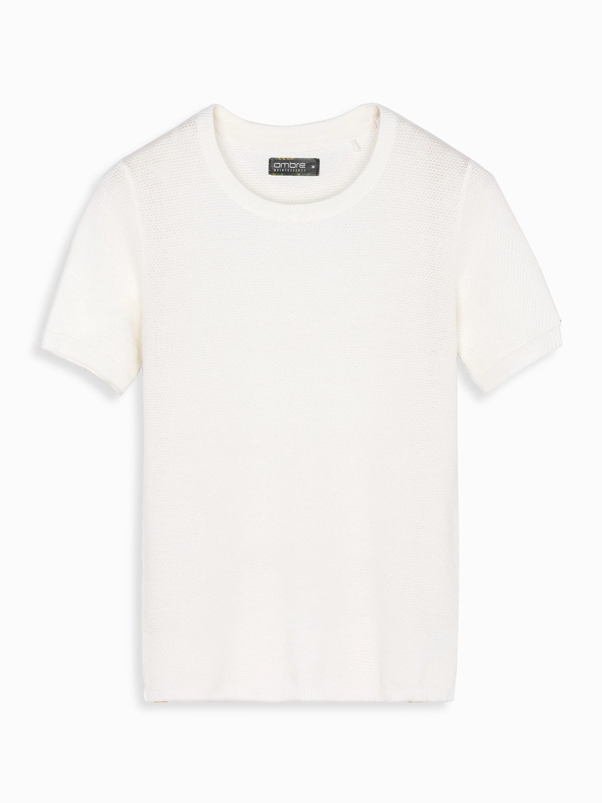 Men's knitted t-shirt with fine texture - white V1 OM-TSCT-0244