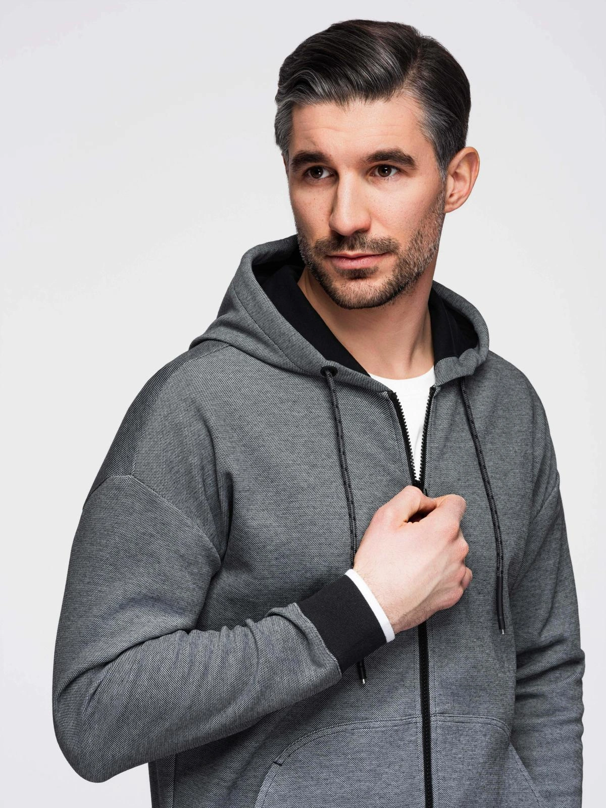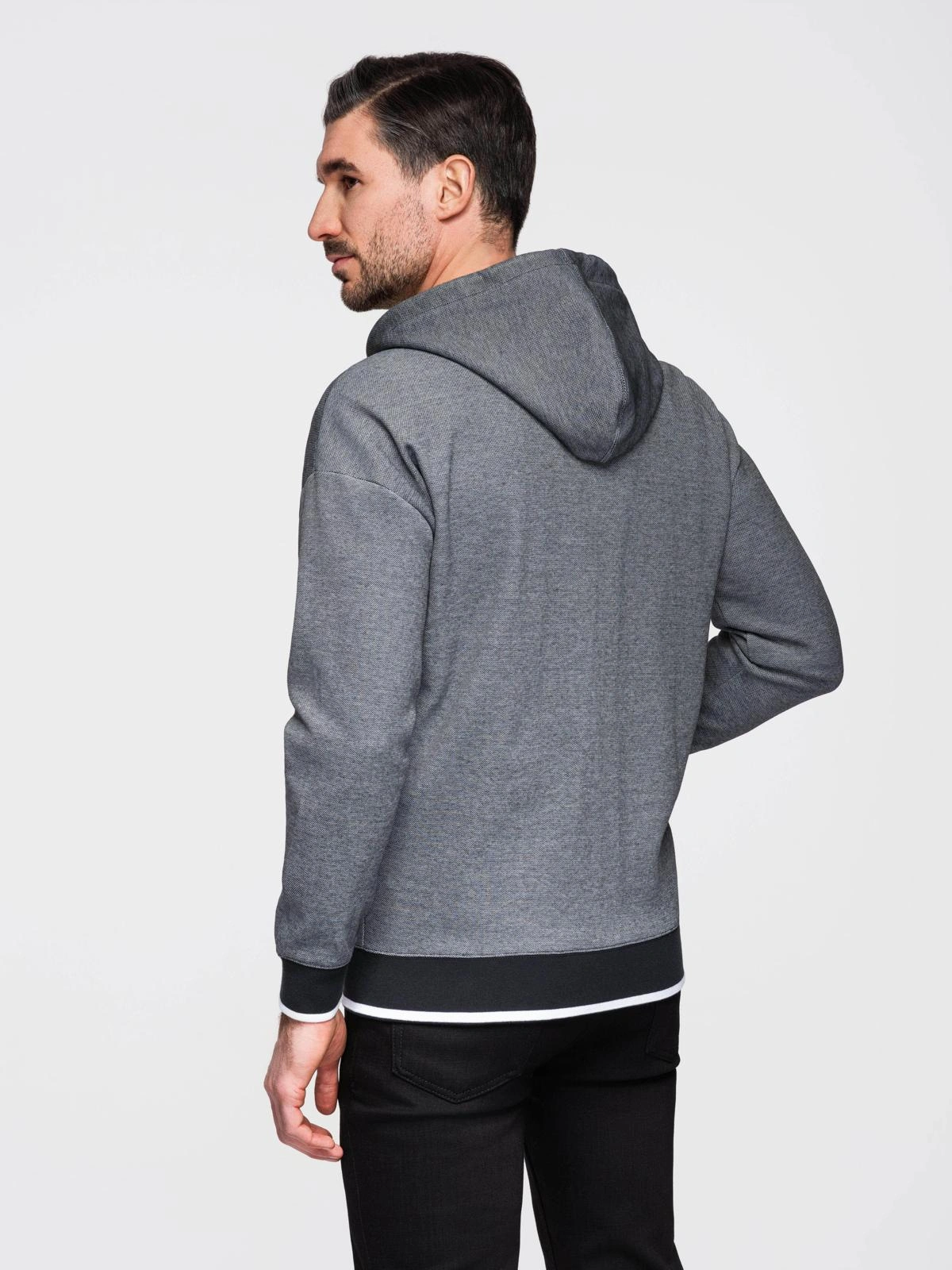 Men's softly structured hooded sweatshirt - black V1 OM-SSZP-0191