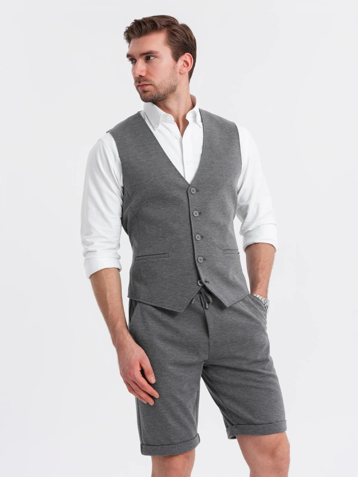 Elegant men's set suit vest + shorts - graphite V3 Z112
