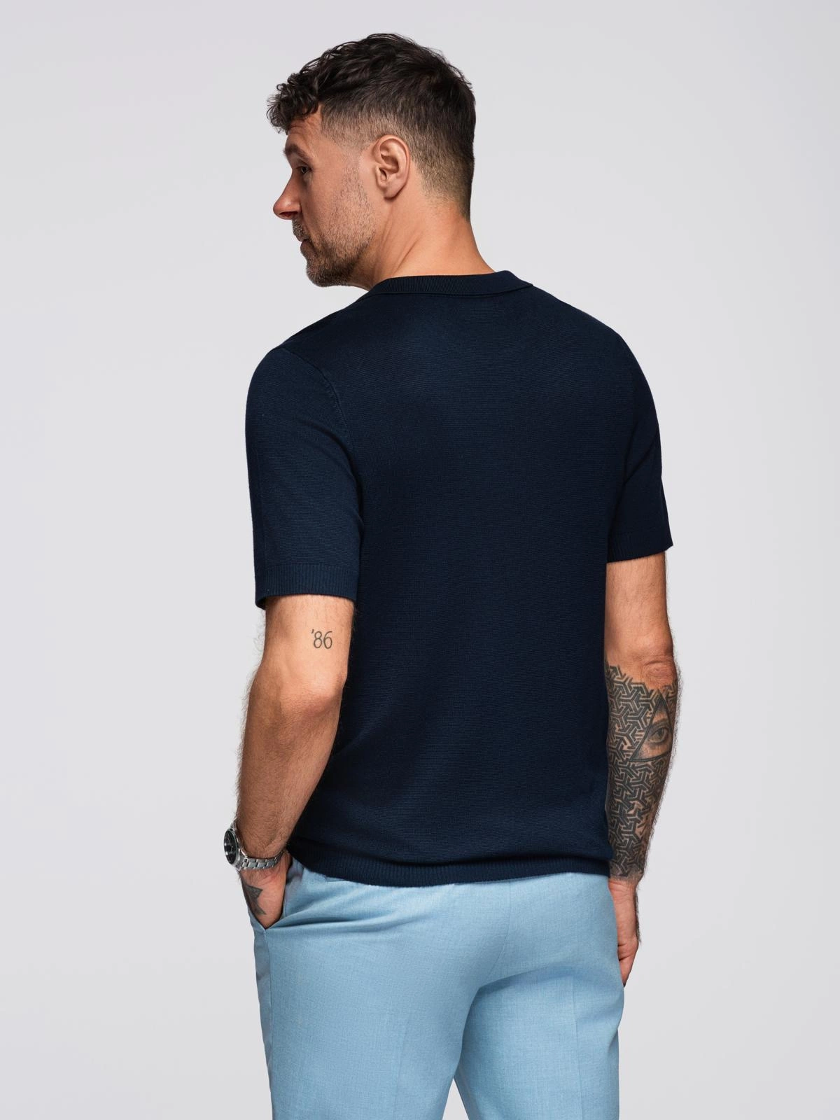 Men's buttonless polo shirt with classic weave - navy blue V1 OM-POSS-0159