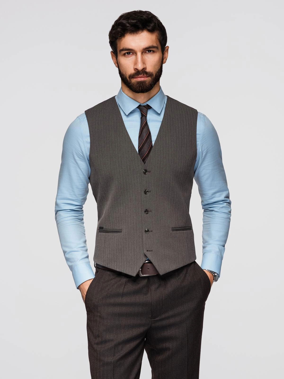 Men's elegant SLIM FIT herringbone vest - graphite V2 OM-BLZV-0143