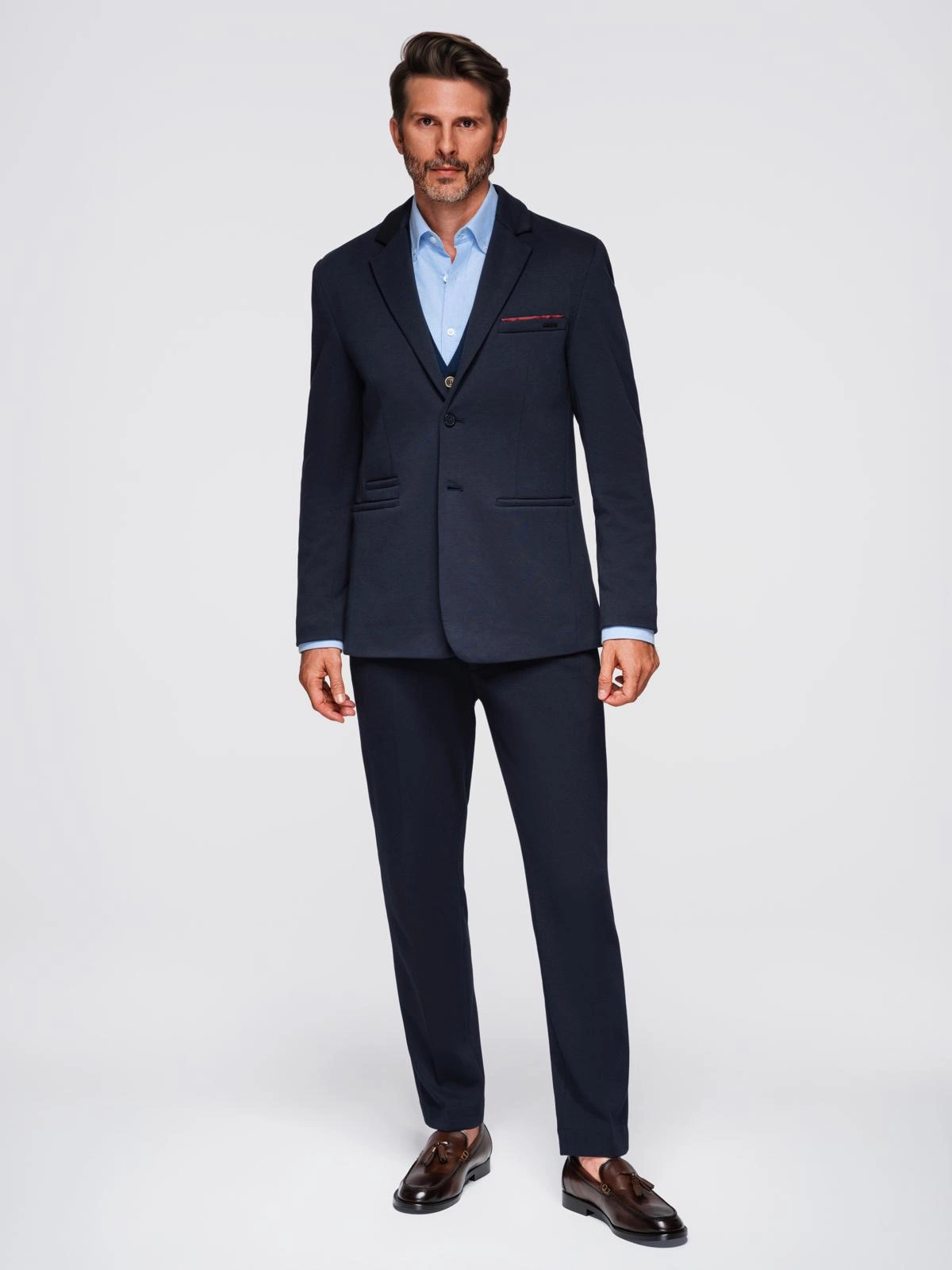 Men's knitted jacket with a fitted cut - navy blue V3 OM-BLZB-0100