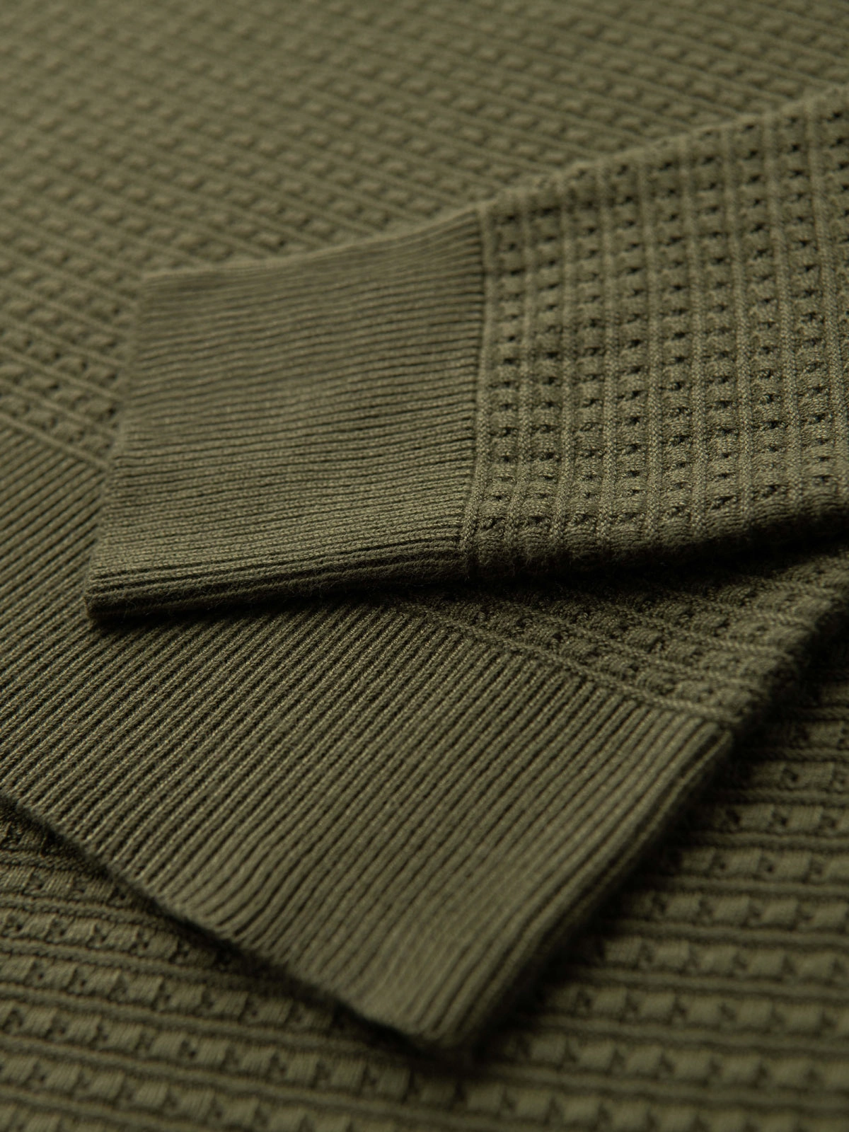 Structured men's sweater with round neckline - olive V1 OM-SWSW-0181