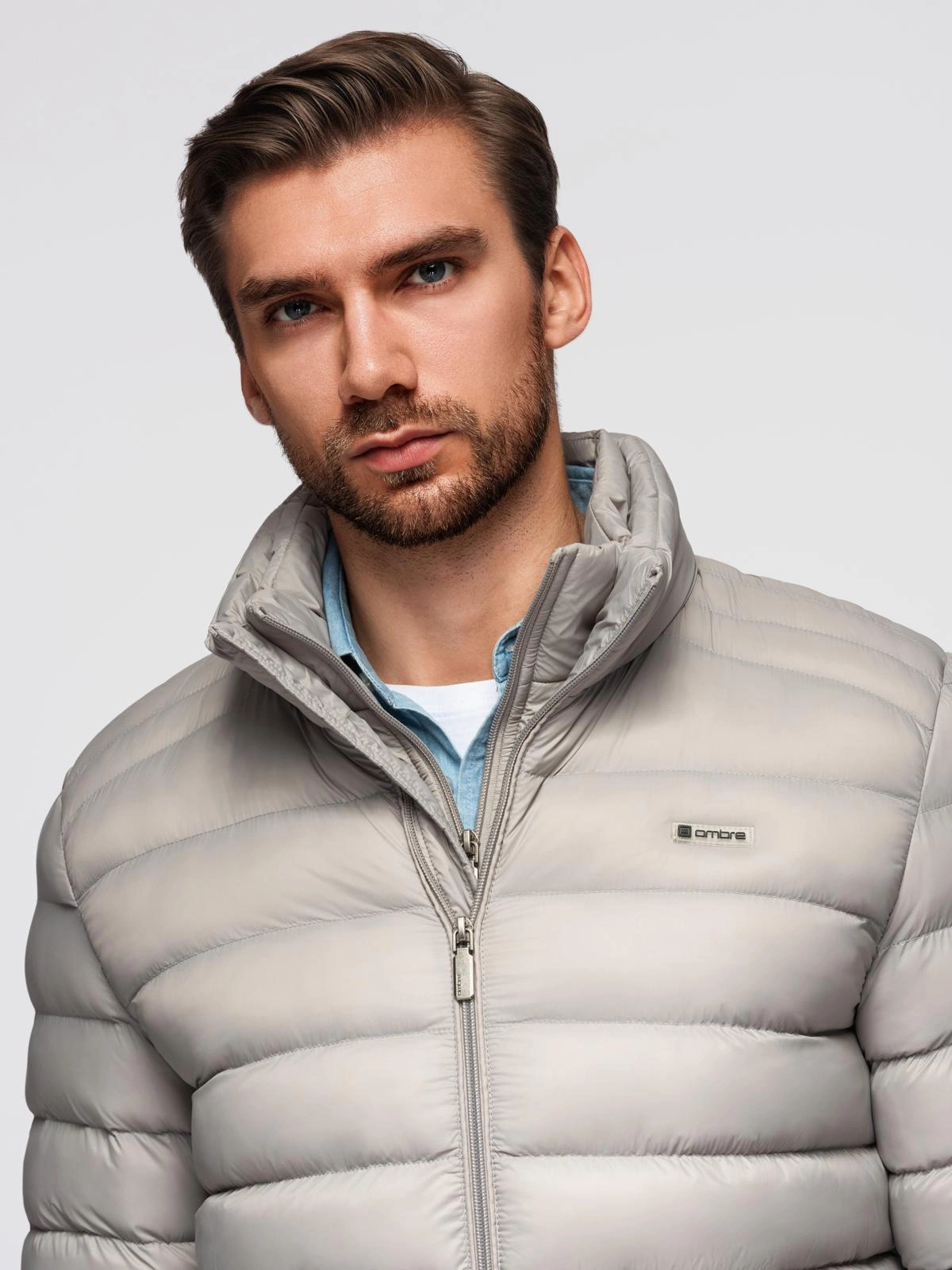 Men's quilted jacket with two fasteners - light grey V2 OM-JALP-0231