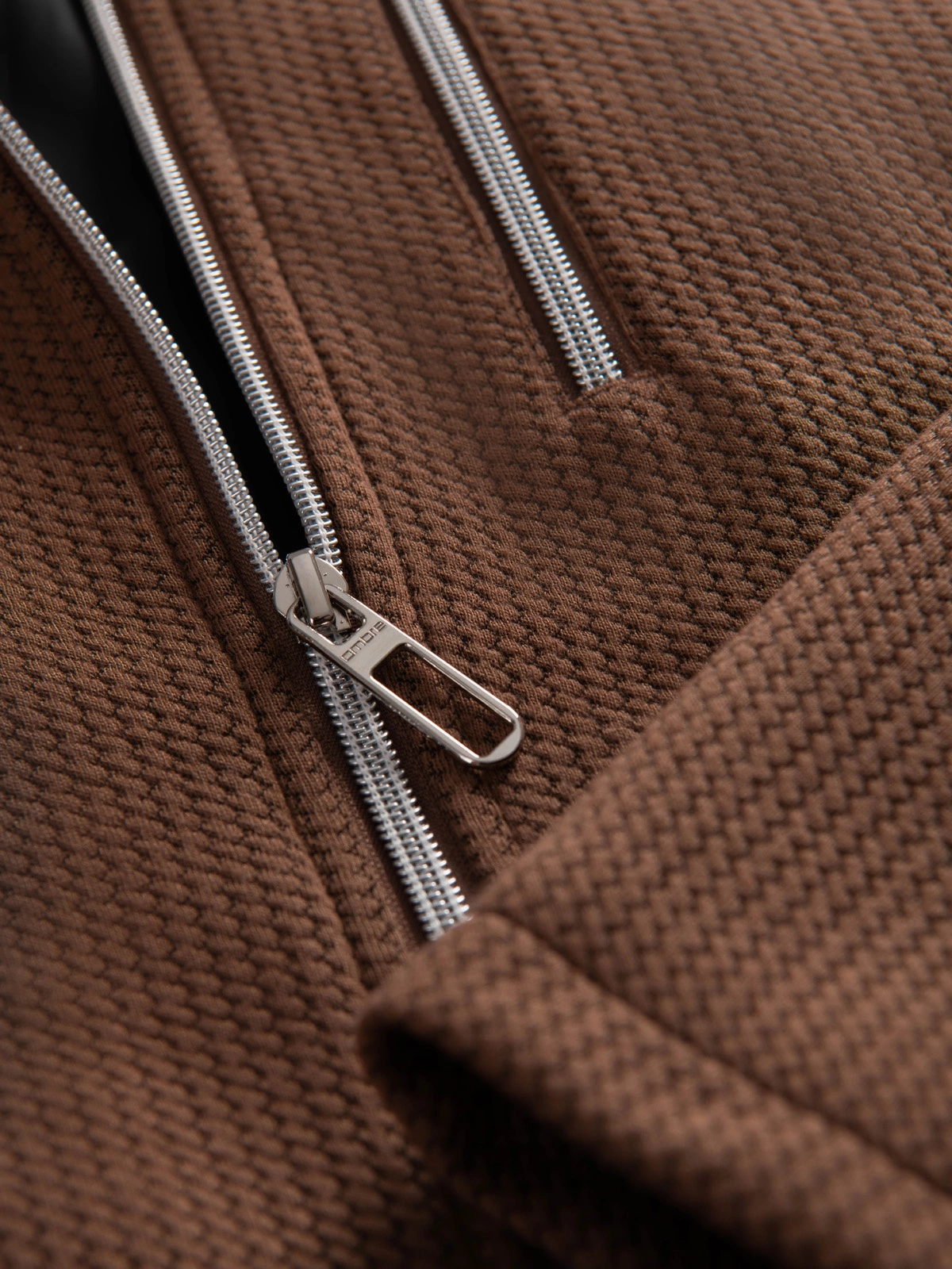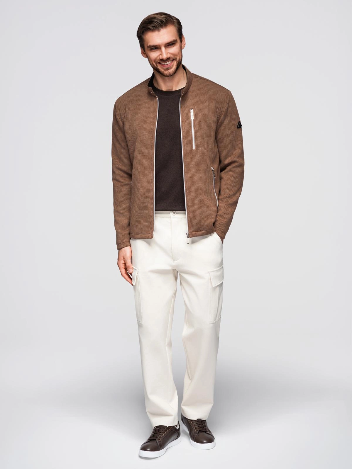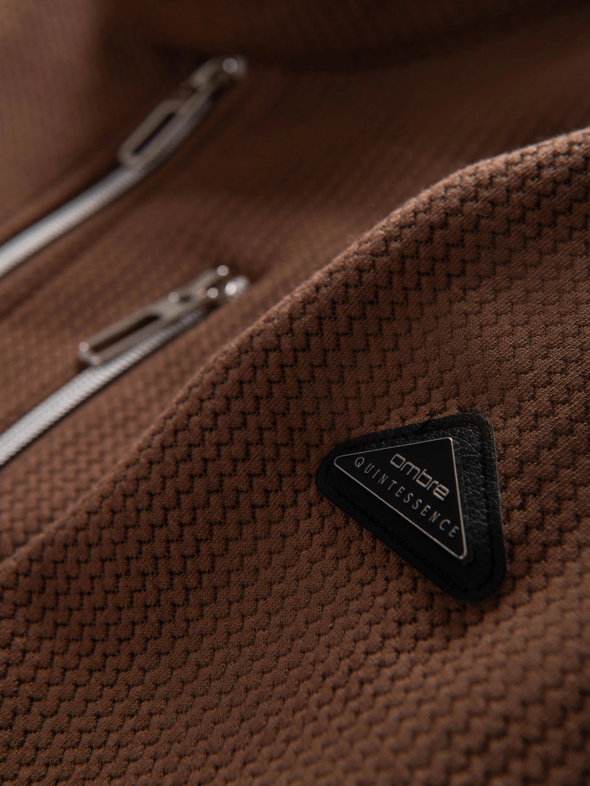 Men's structured biker jacket with stand-up collar - brown V2 OM-JANP-0229