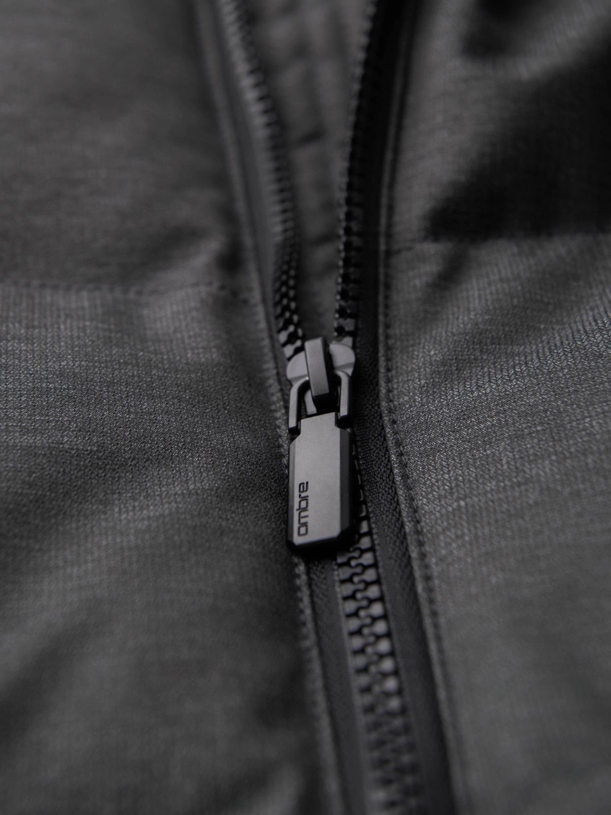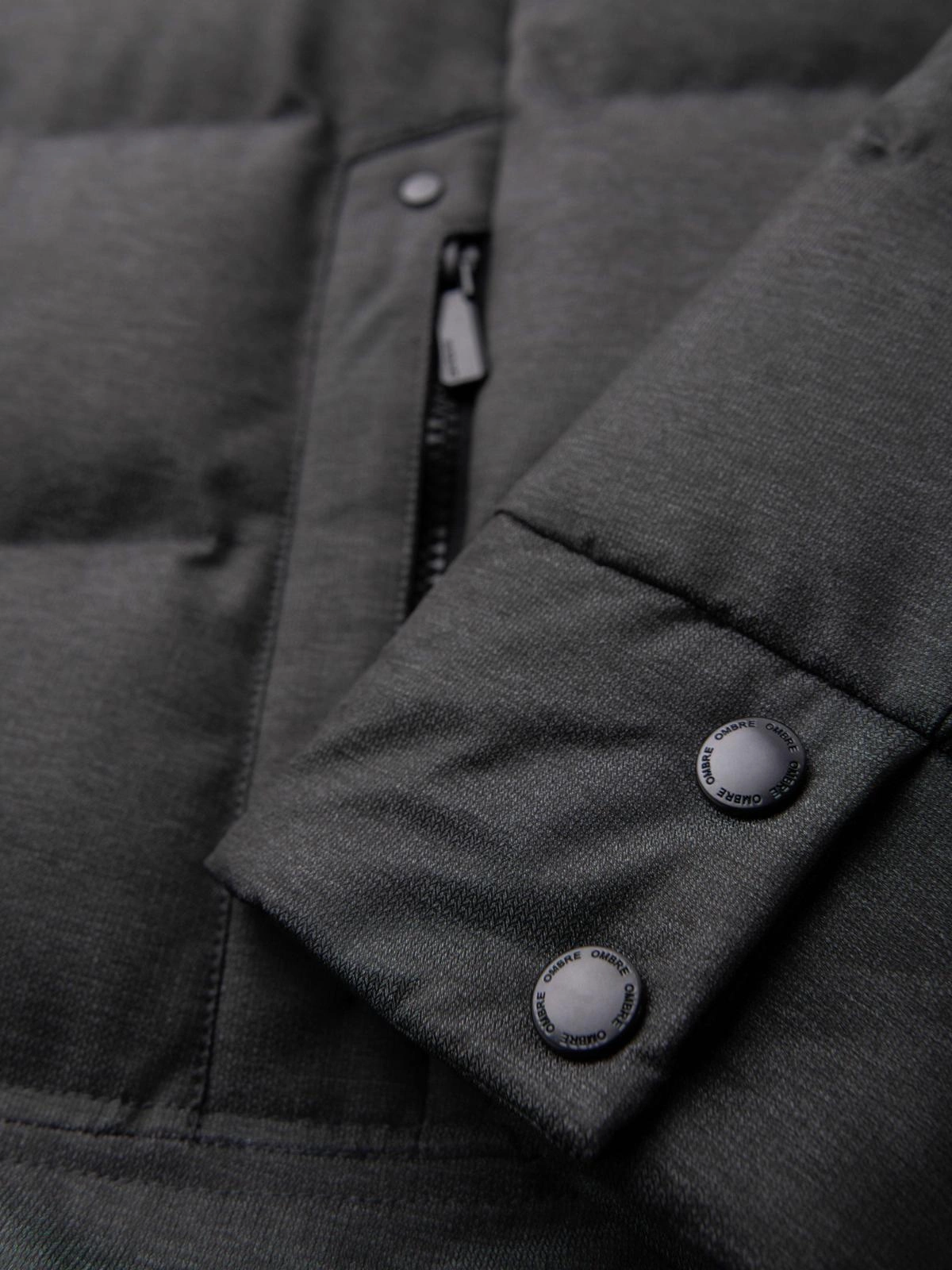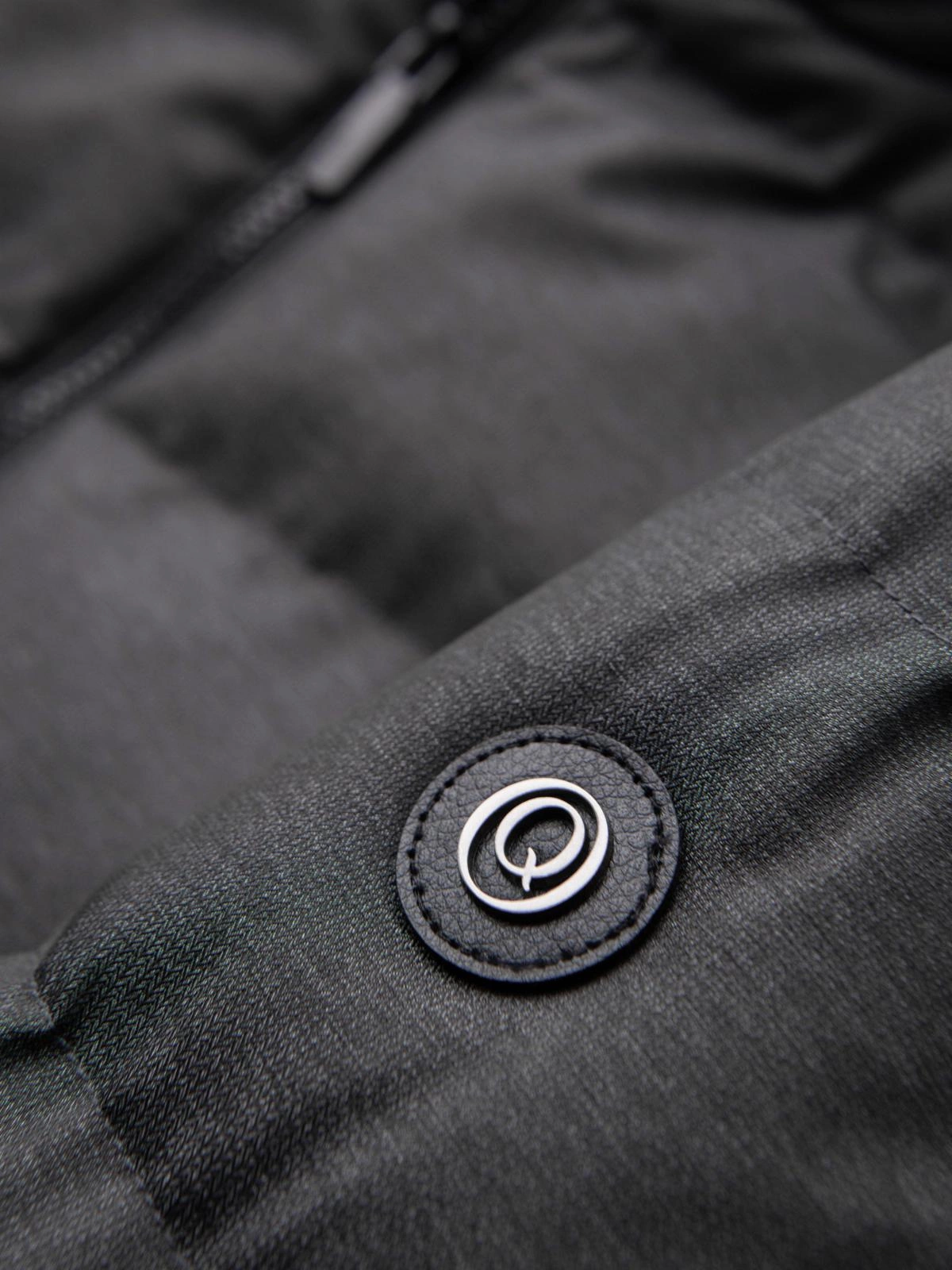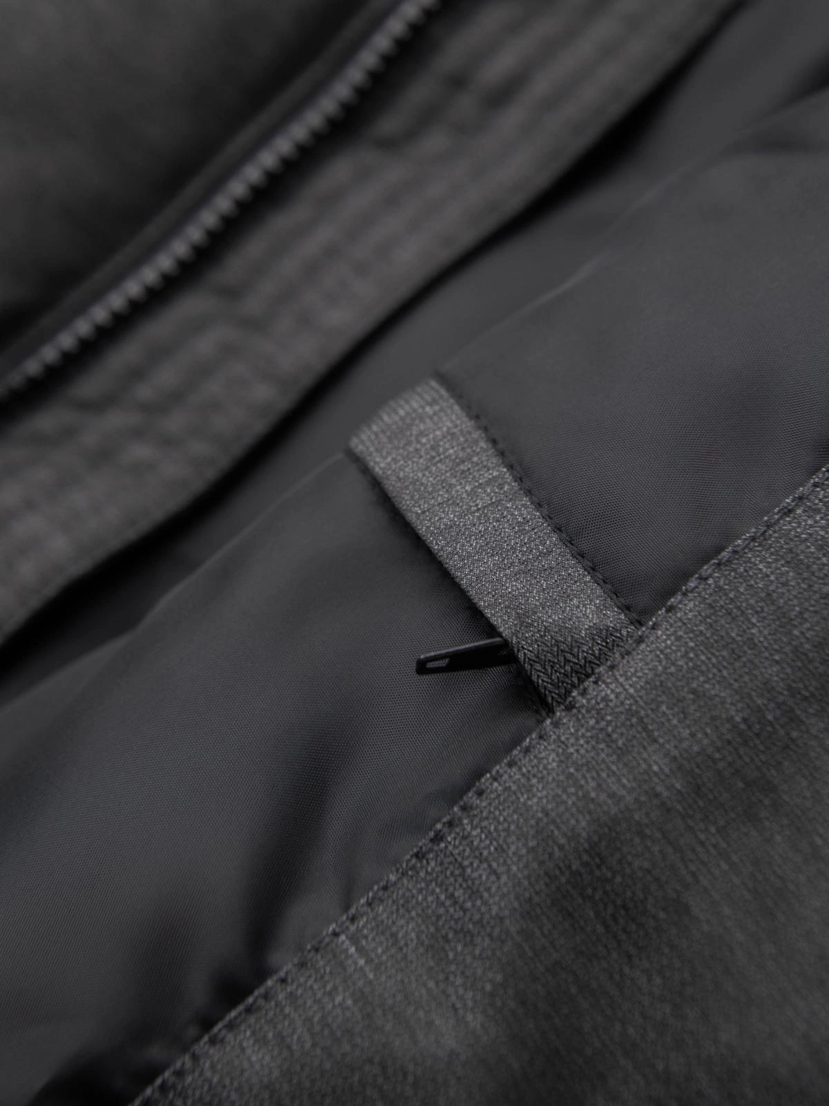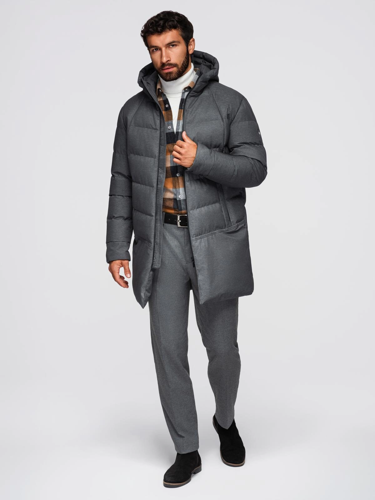 Men's long quilted jacket with hood - grey V2 OM-JALJ-0264