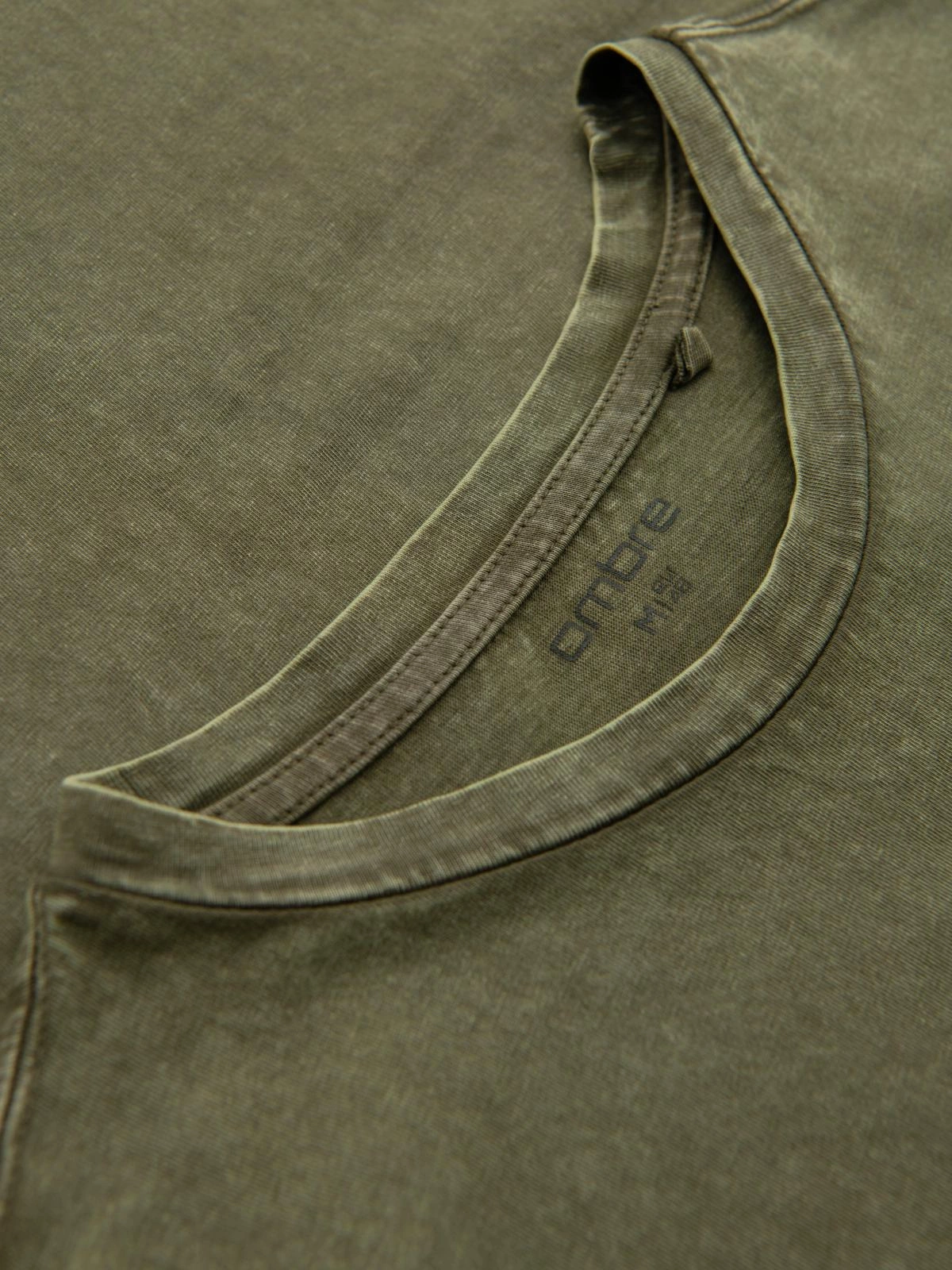 Men's t-shirt with wash effect - olive V4 OM-TSWT-0116