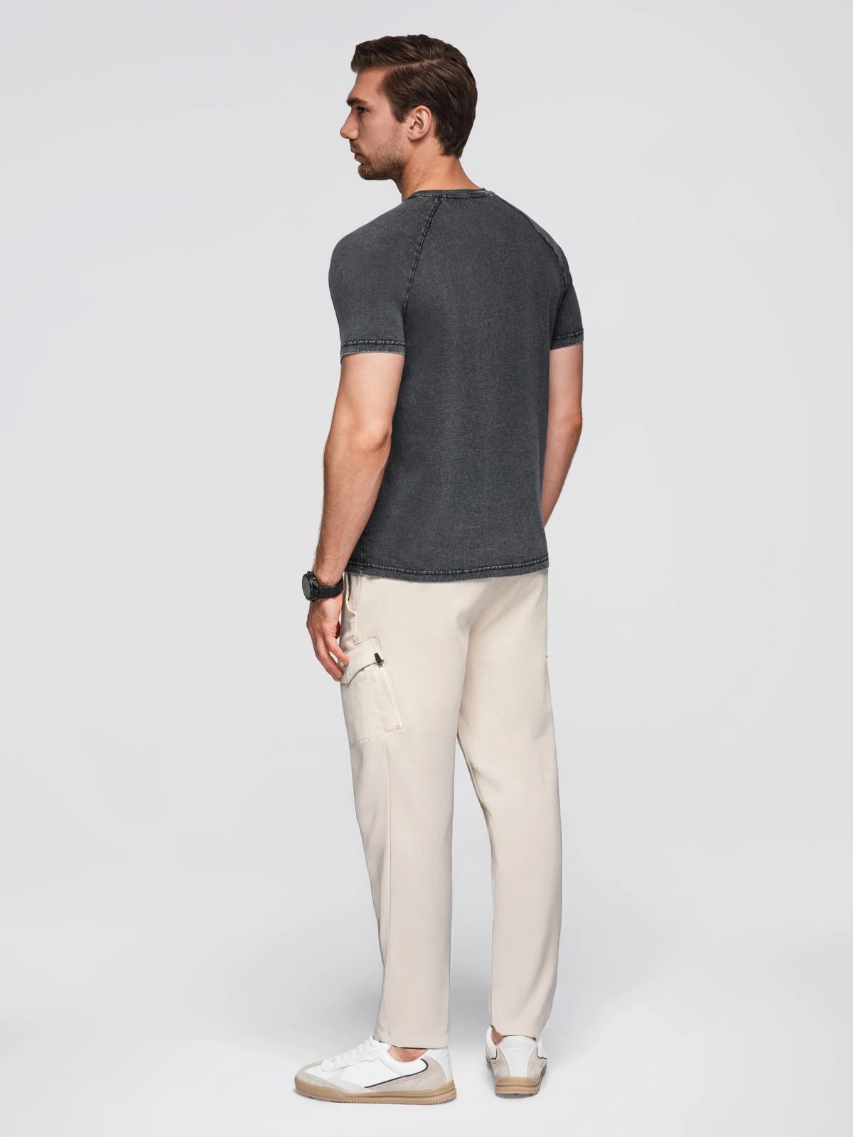 Men's T-shirt with wash effect and buttons at neckline - black V1 OM-TSWT-0150