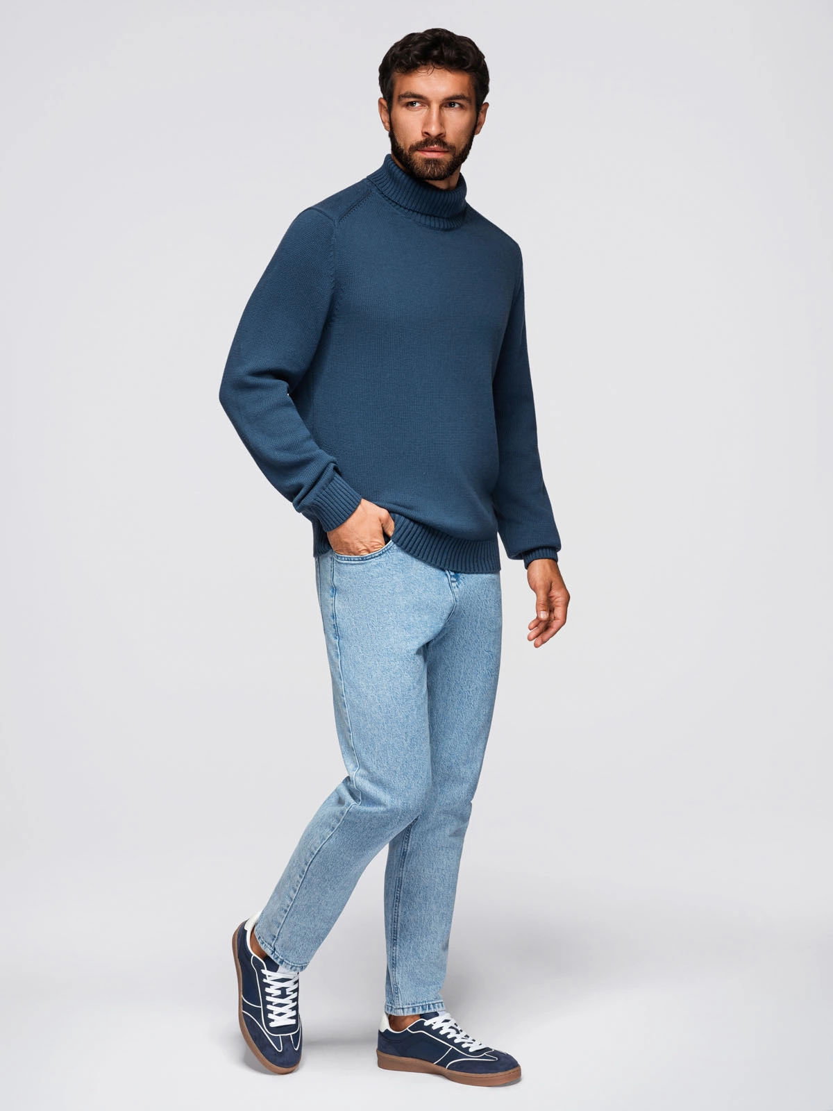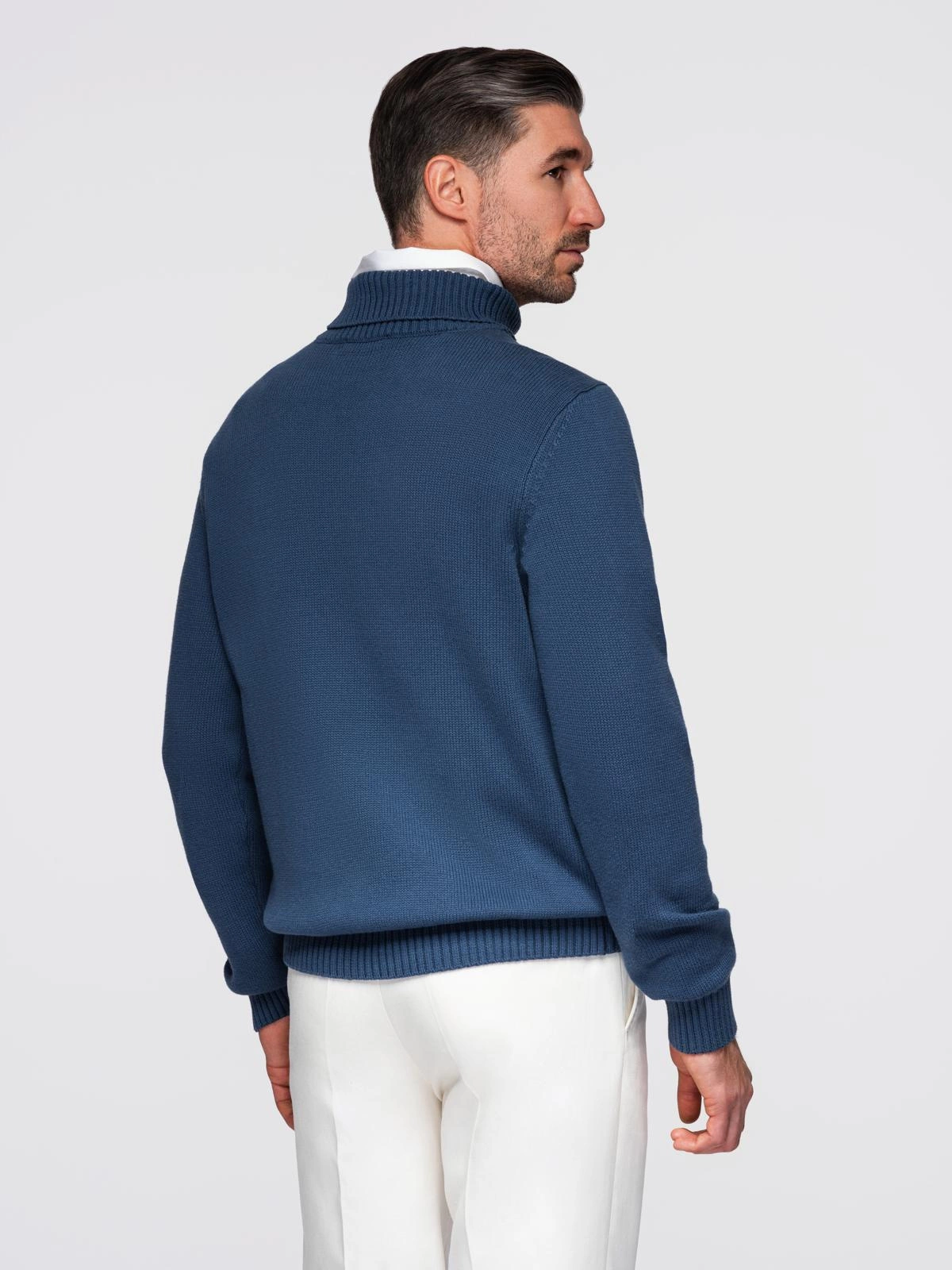 Men's turtleneck knit sweater - dark blue V2 OM-SWTN-0163