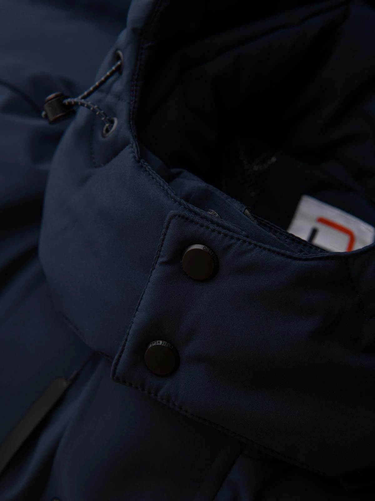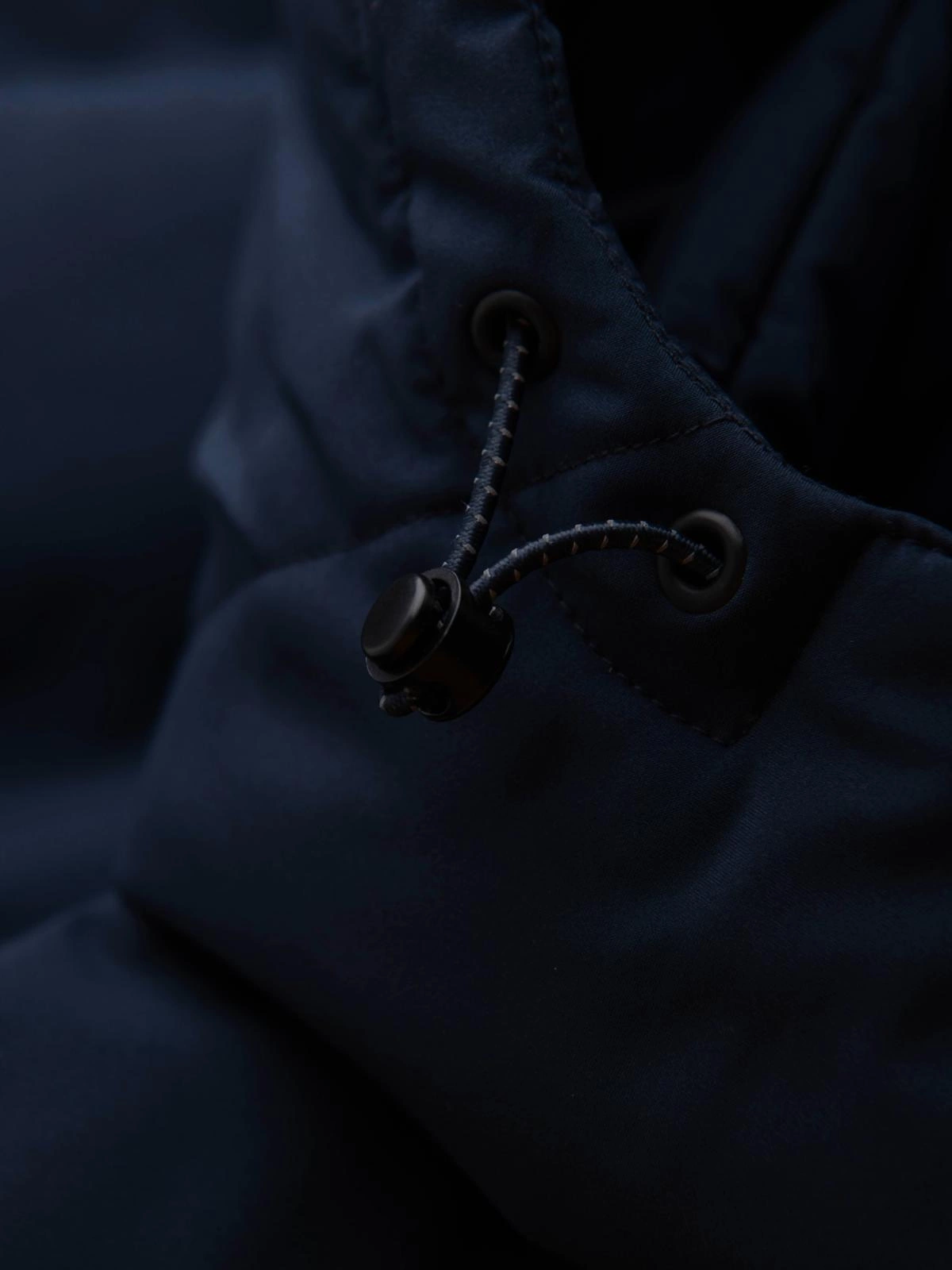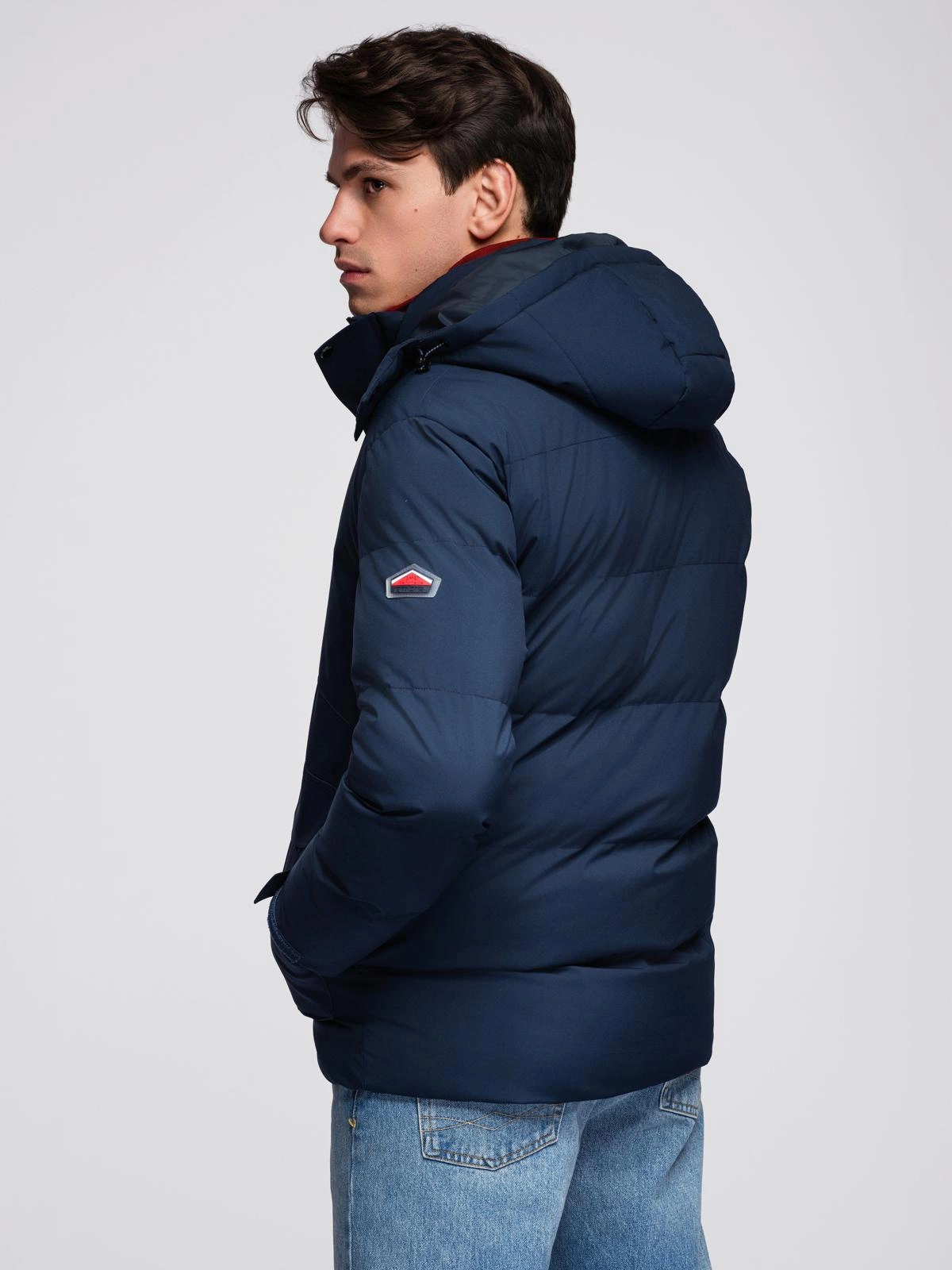 Men's winter jacket with detachable hood made of waterproof material - navy blue V1 OM-JAHP-0306
