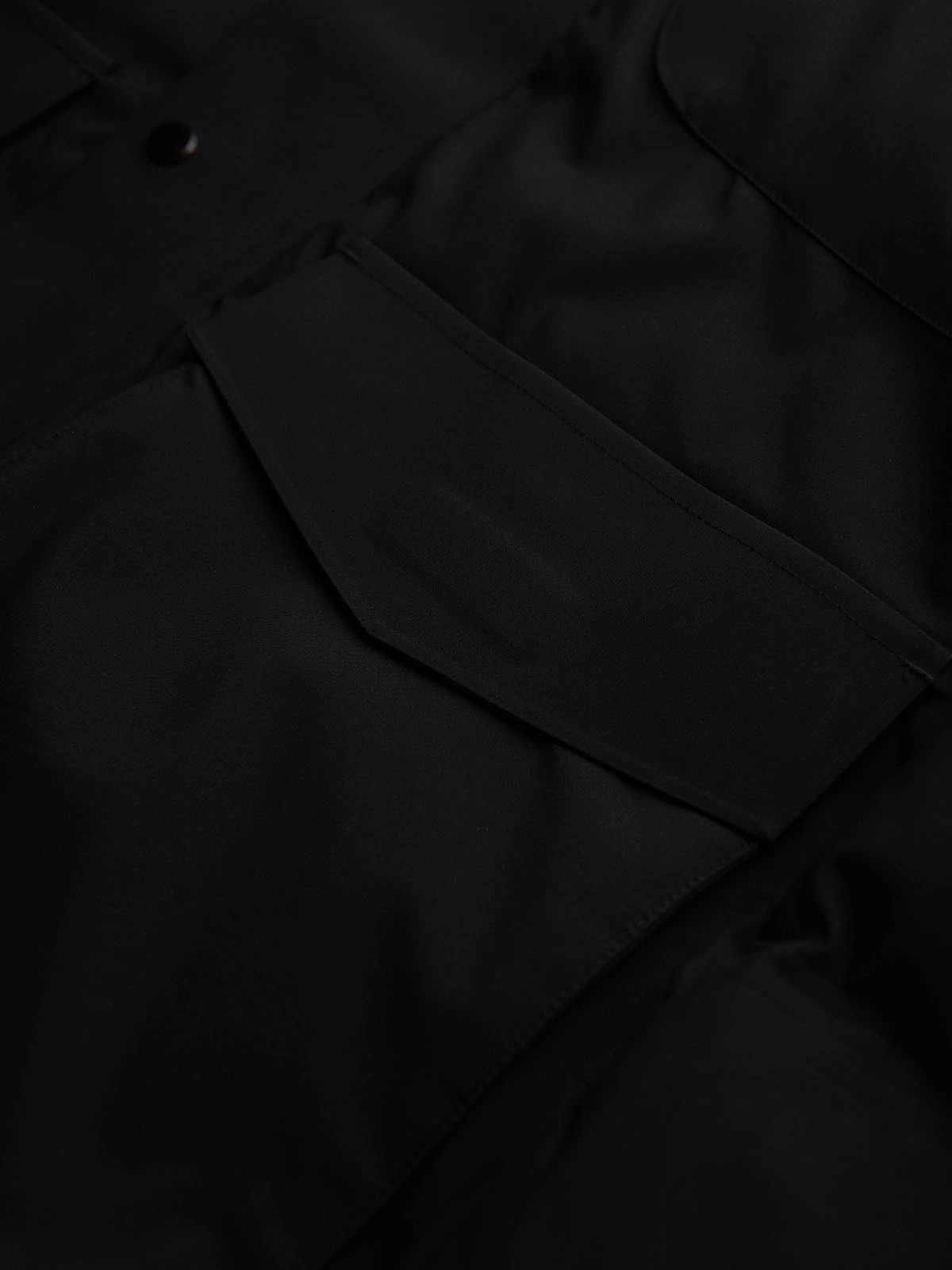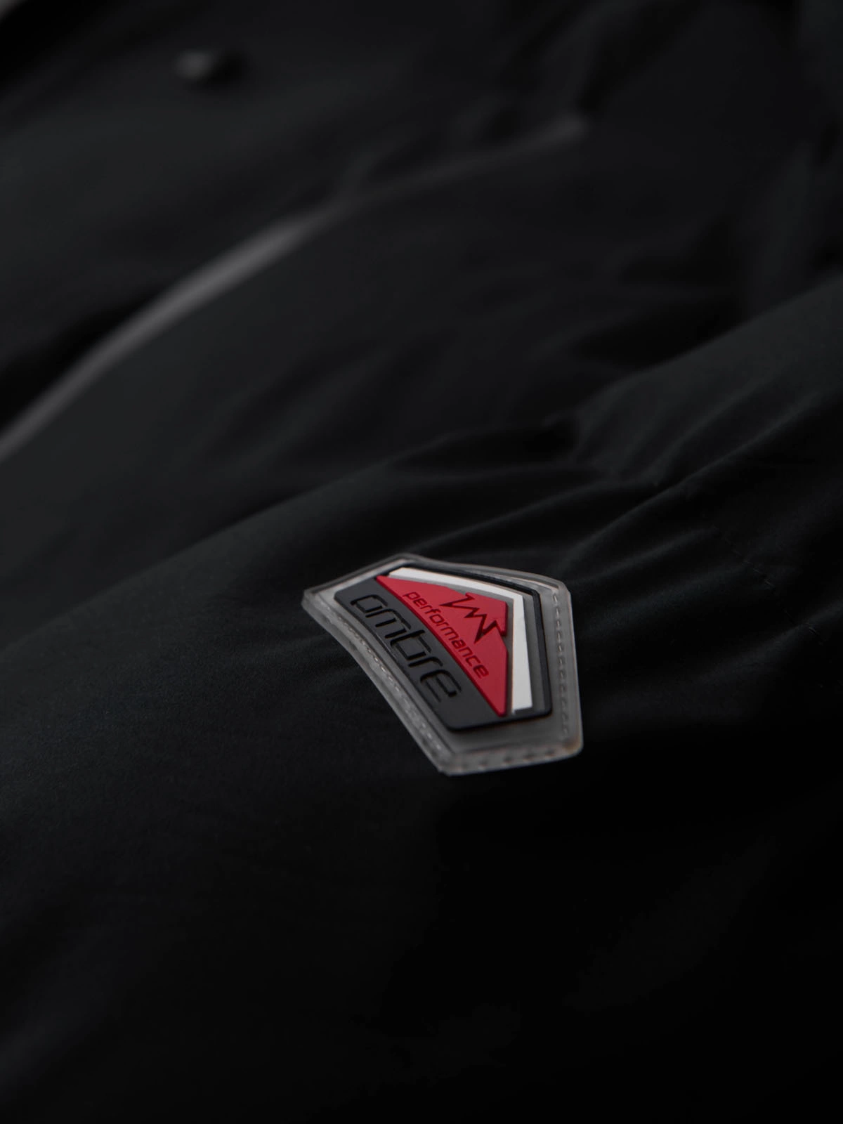 - branding with a rubber emblem on the shoulder and a label sewn in at the lower pocket