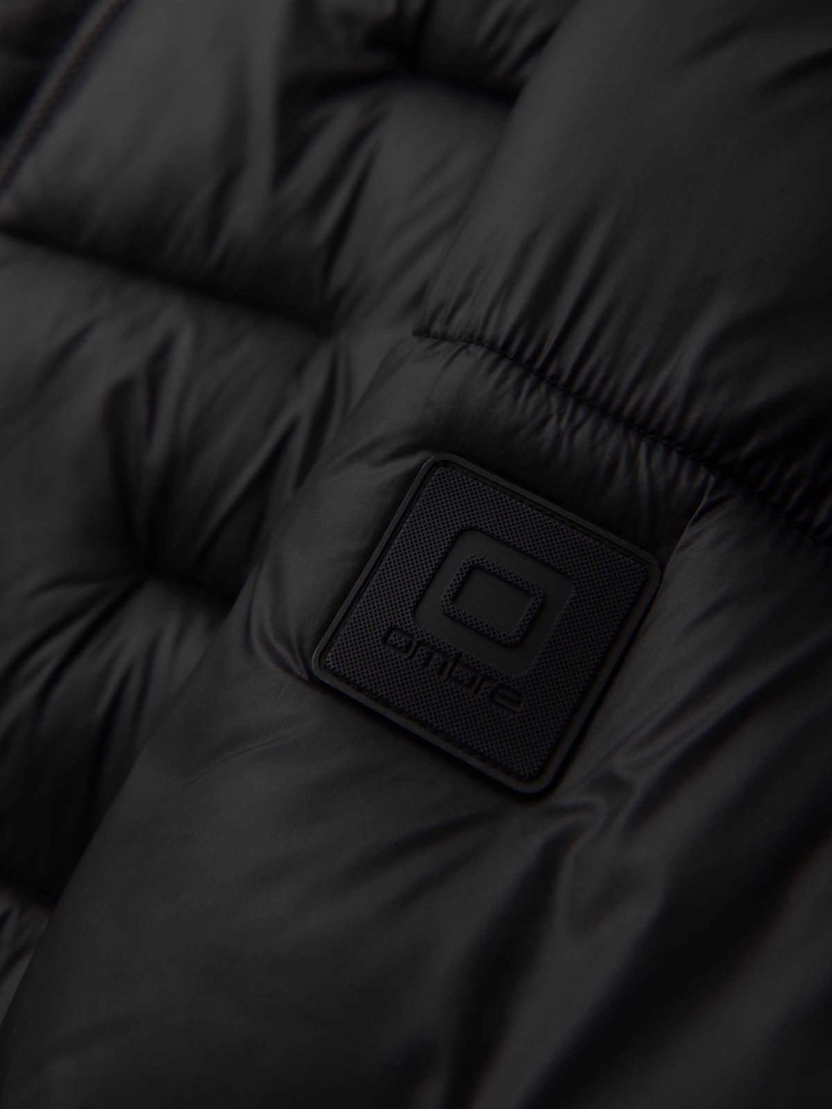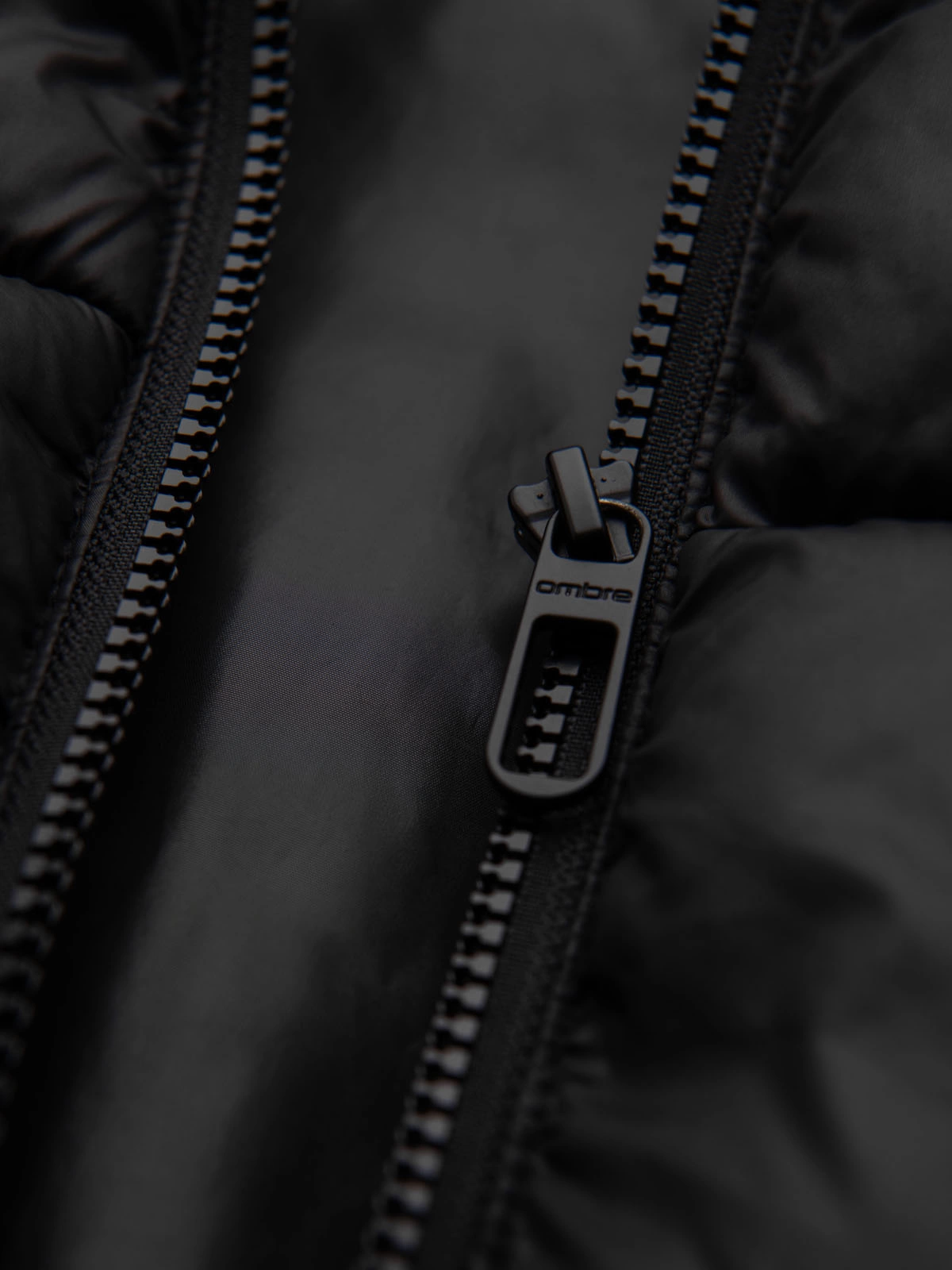 Men's quilted puffer jacket with hood - black V1 OM-JAHP-0235