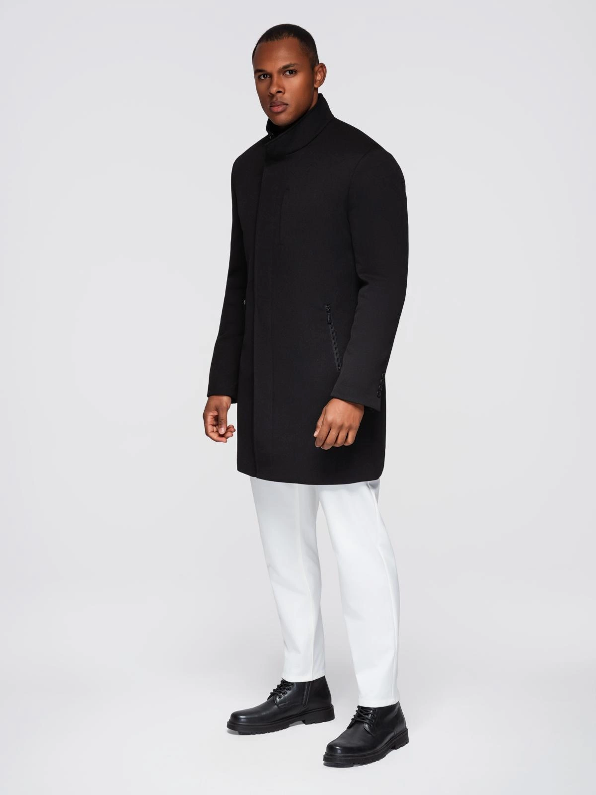 Fitted structured men's high collar coat - black V1 OM-COWC-0136