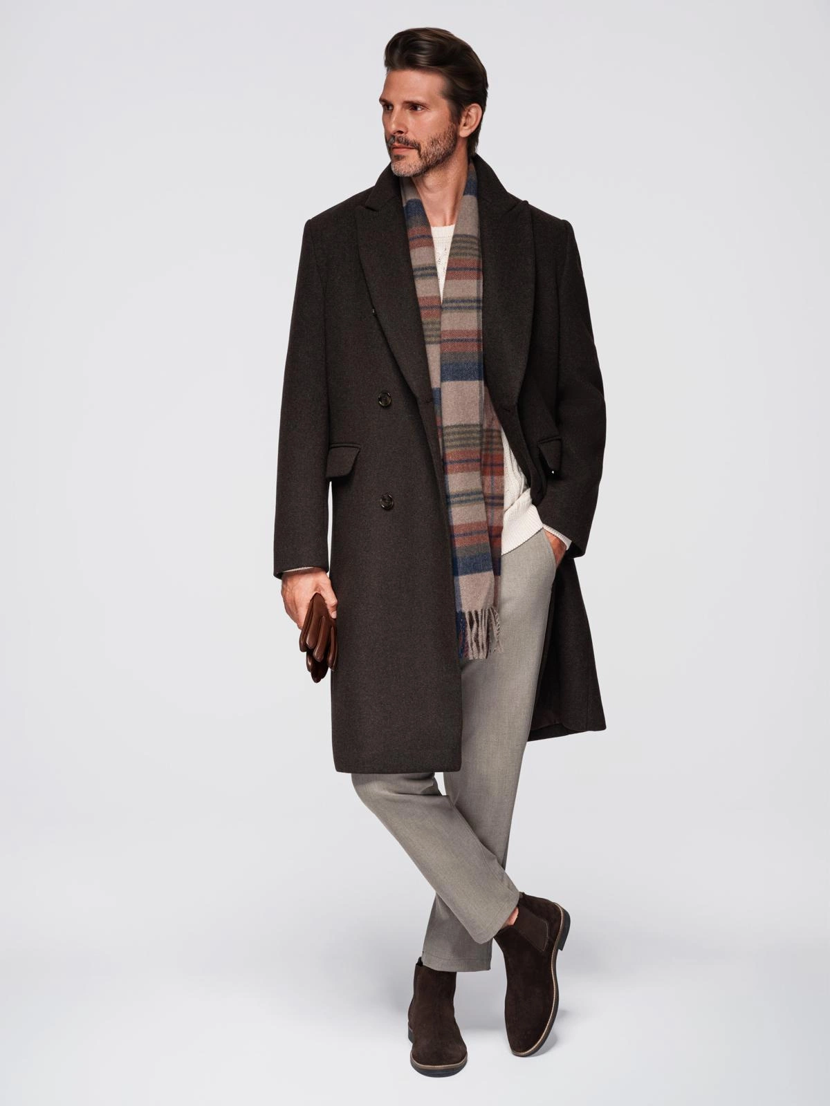 Men's double-breasted wool coat - dark brown V3 OM-COWC-0133