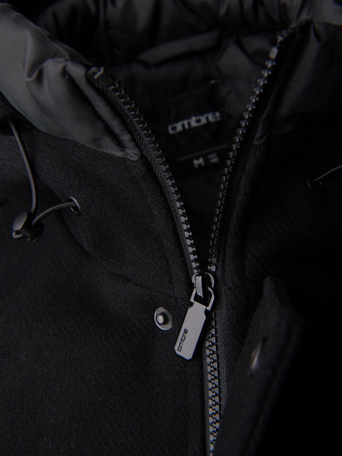 Men's parka coat with wool and hood - black V1 OM-COWC-0132