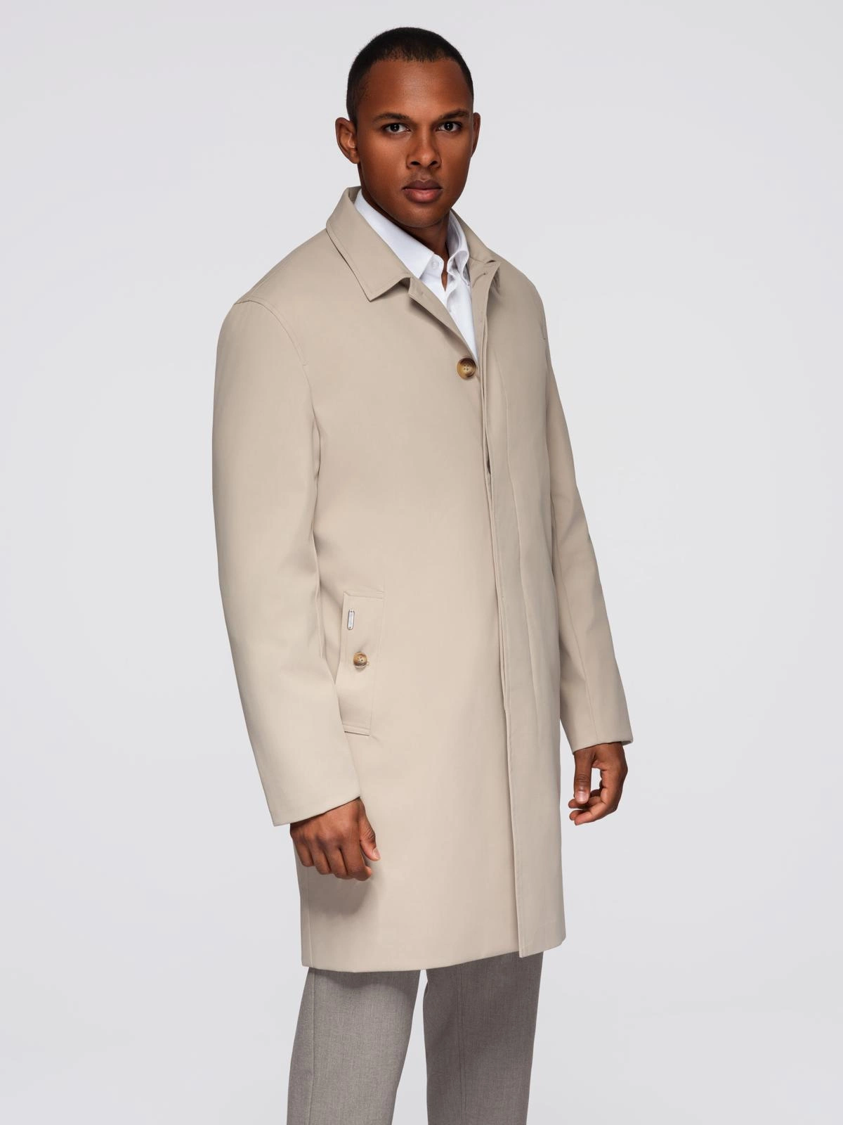 Men's minimalist coat with detachable vest - beige V1 OM-COLC-0139