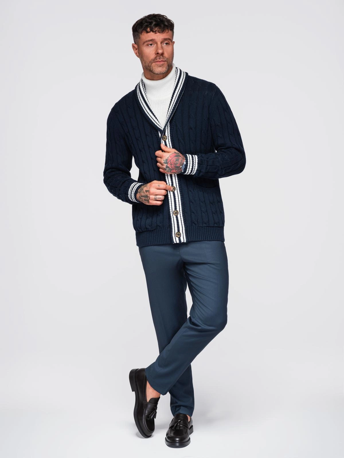 Men's cardigan sweater with shawl collar in preppy style - navy blue V4 OM-SWCD-0152