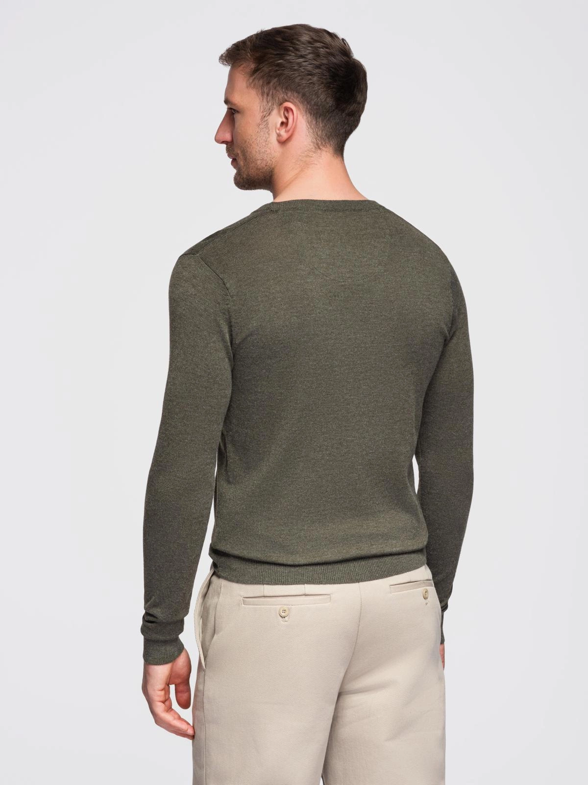Men's BASIC viscose classic sweater with round neckline - olive melange V17 OM-SWBS-0106