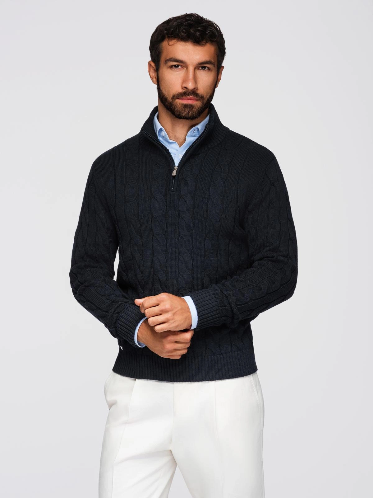 Men's plaid sweater with turtleneck zipper - black V2 OM-SWZS-0138