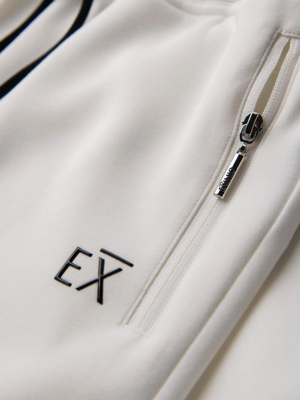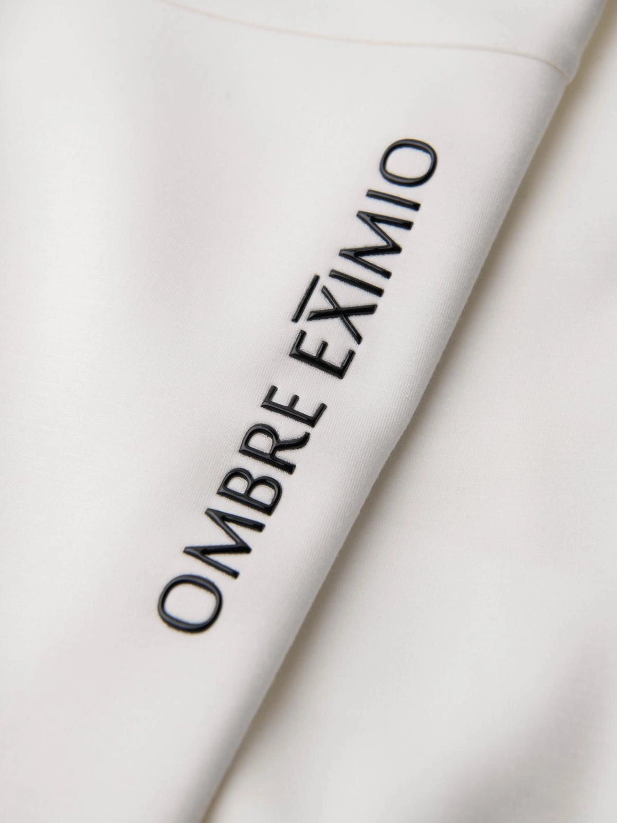 Men's sweatpants with ribbed legs and rubber print - white V2 OM-PASK-0223