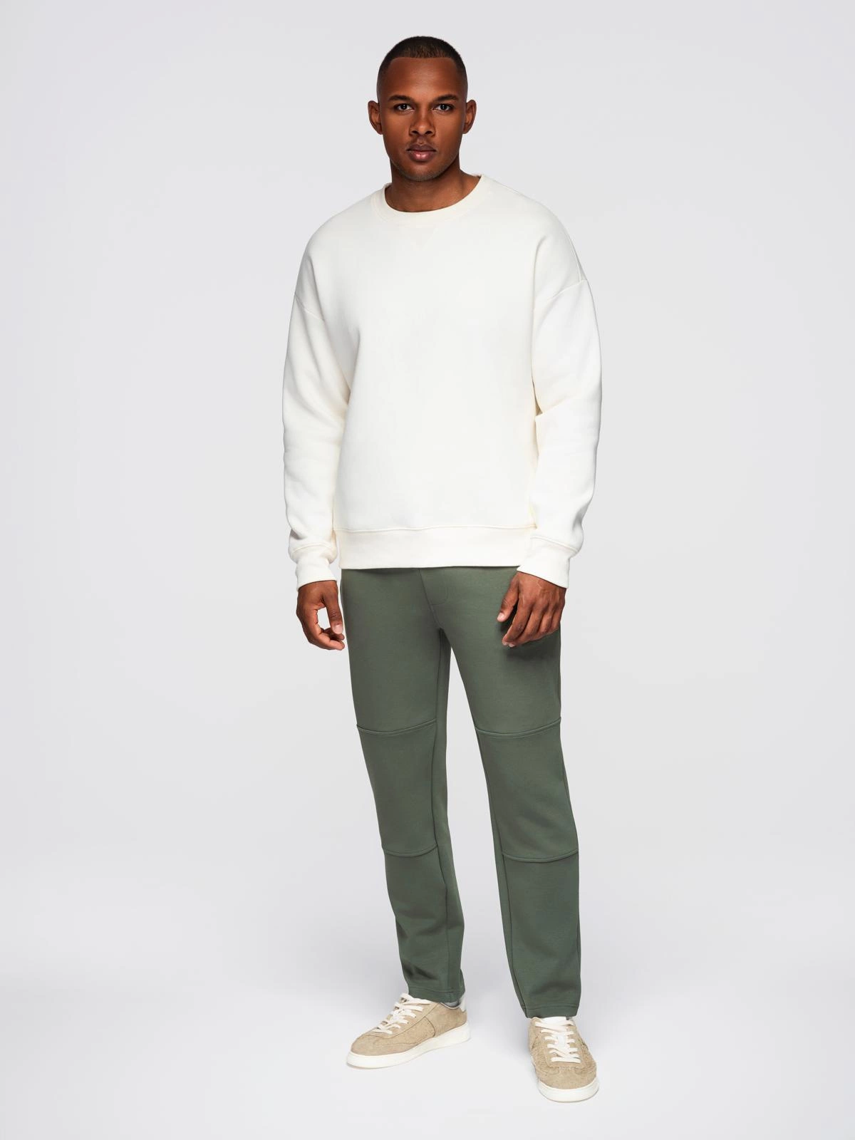 Men's sweatpants with straight leg and rubber details - dark olive green V4 OM-PASK-0281