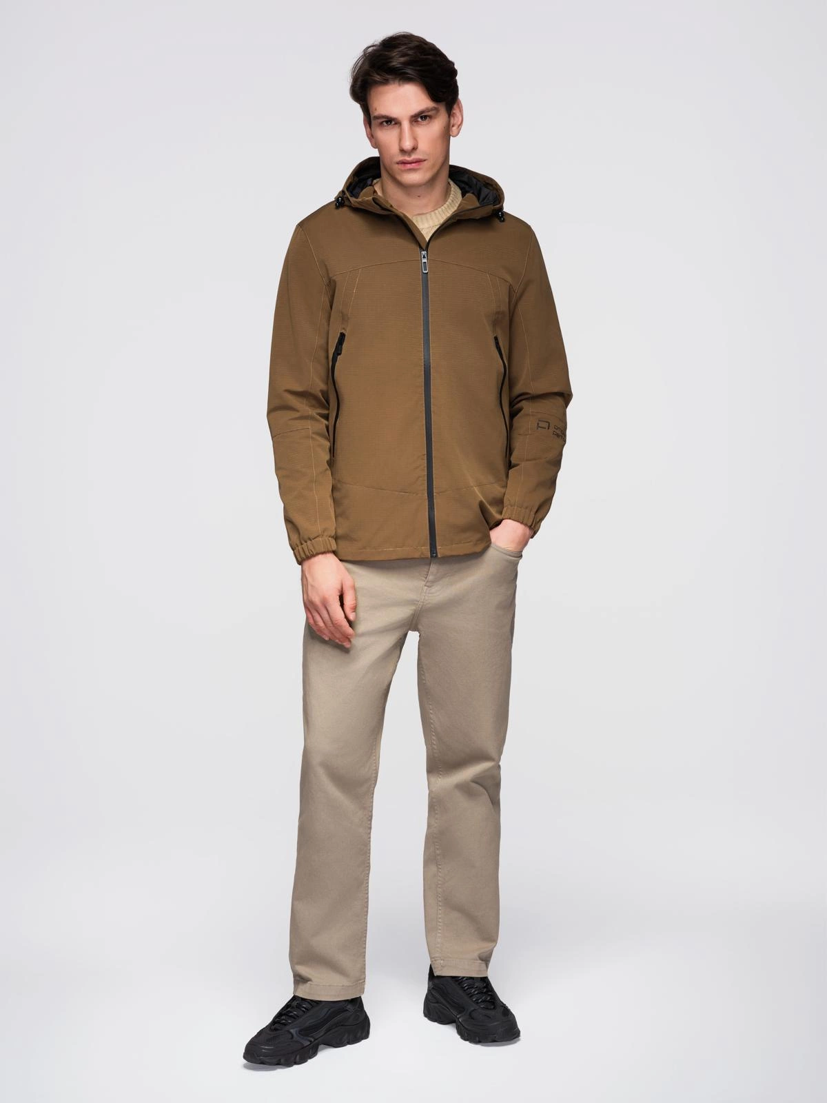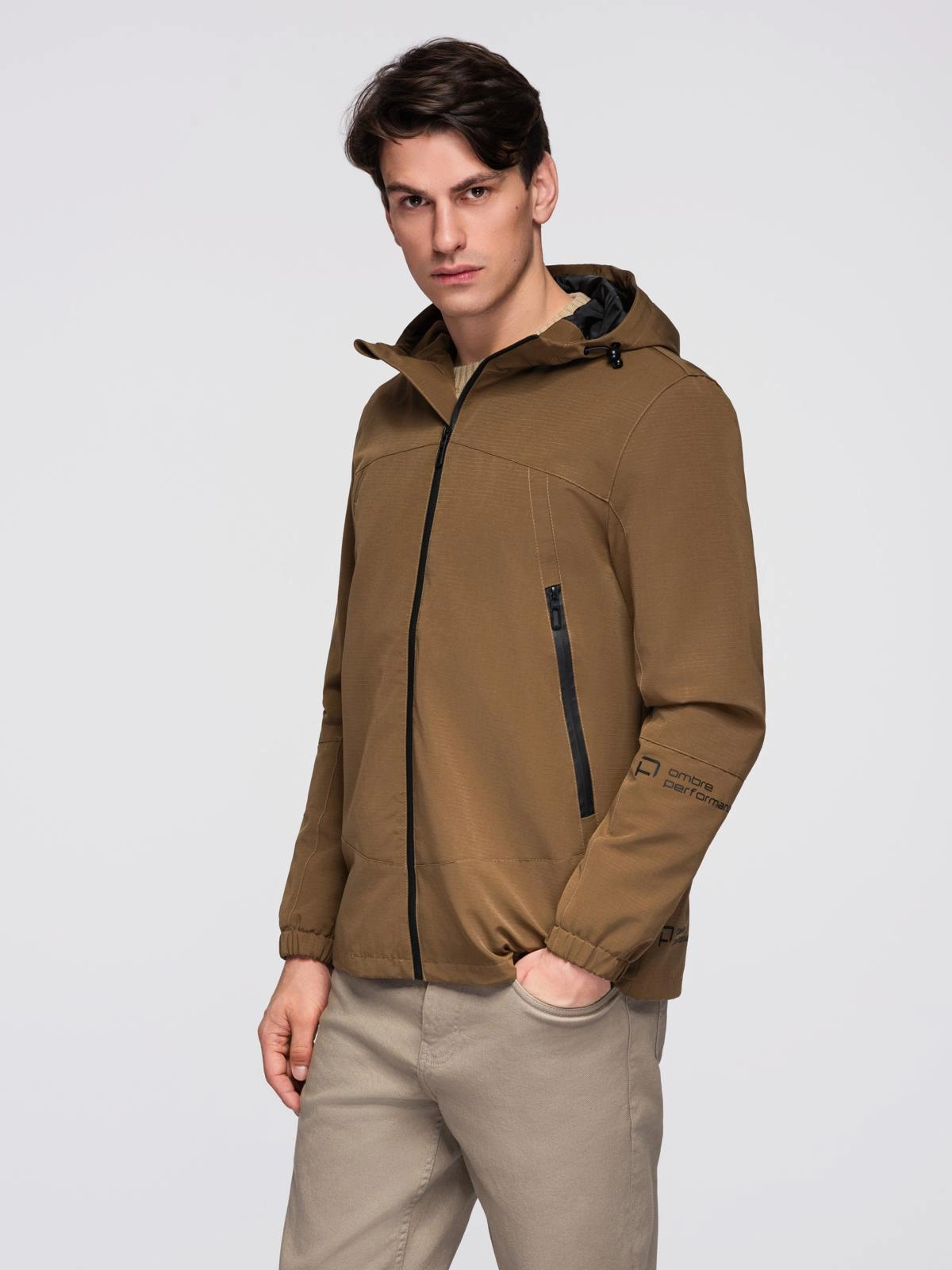 Men's lightweight jacket with waterproof coating and hood- brown V2 C638
