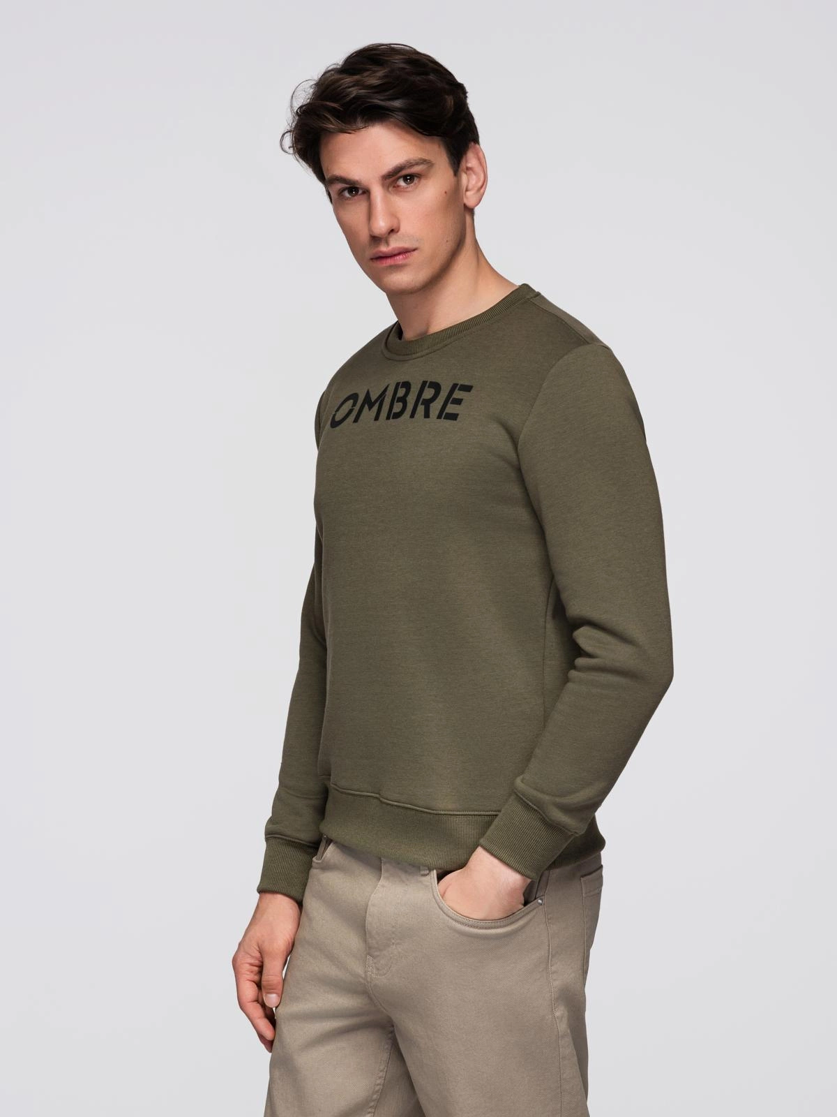 Classic men's sweatshirt with inscription - dark olive V2 B1711