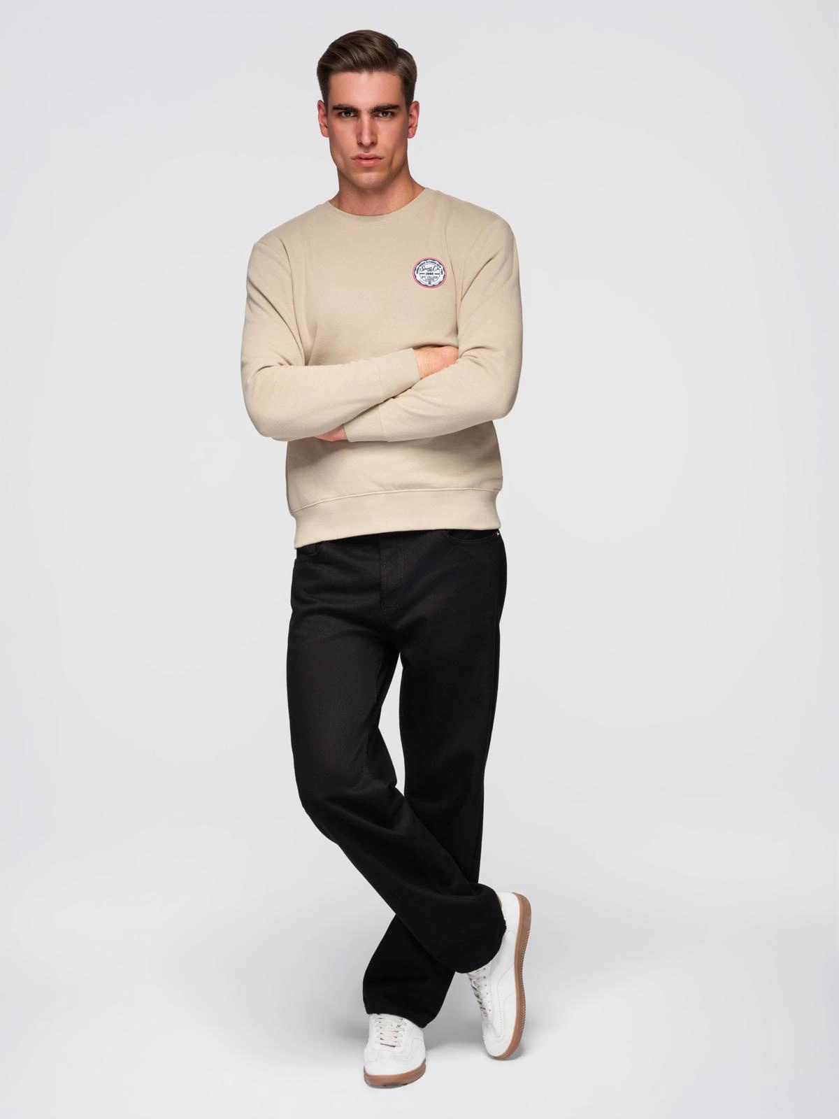 Men's non-stretch sweatshirt with patch - beige V3 B1713