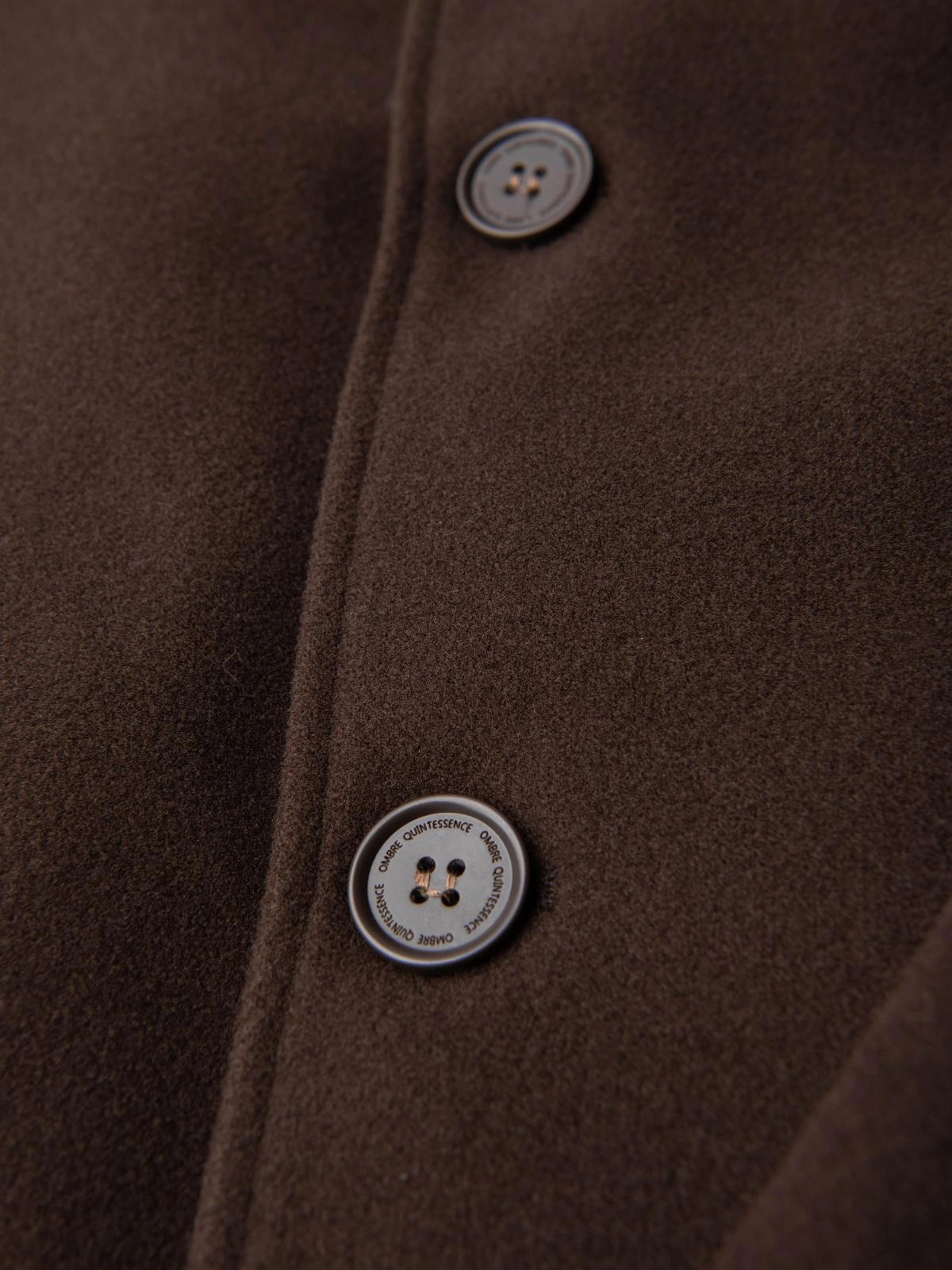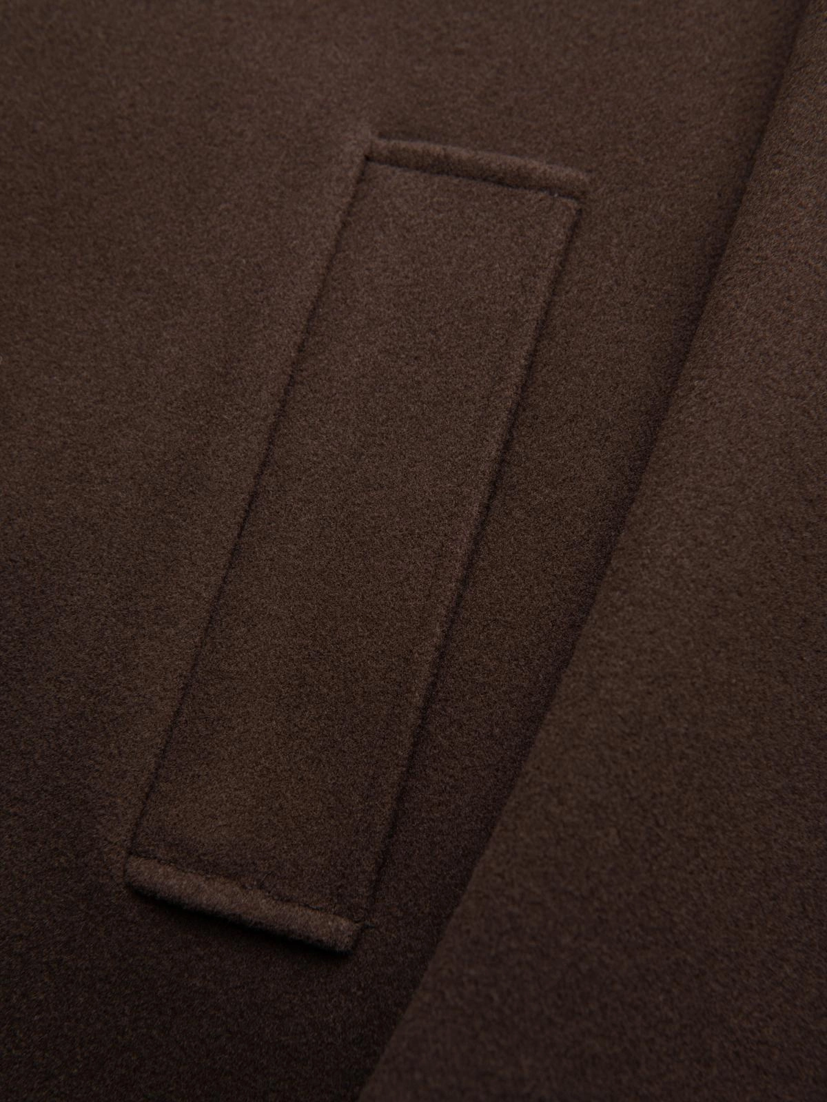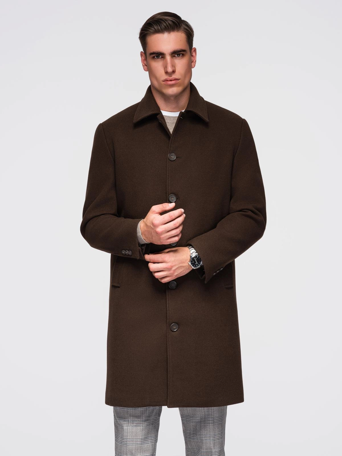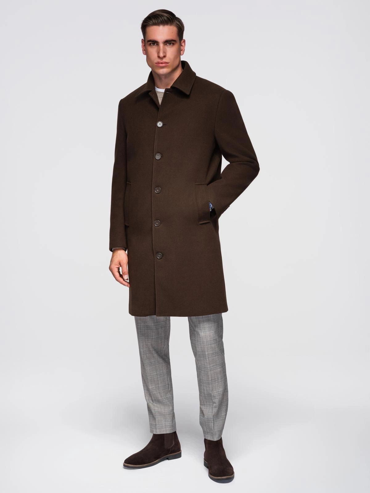 Single-breasted men's long coat with collar and bolster - brown V4 OM-COWC-0135