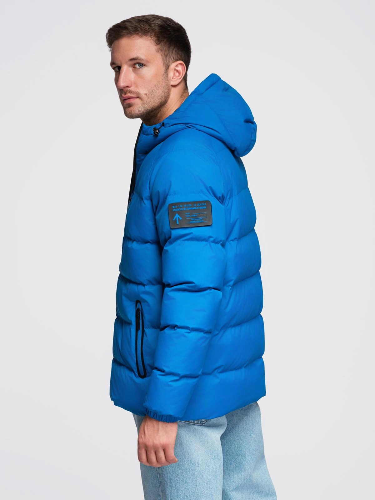 Warmed quilted men's jacket with raglan sleeves - blue V2 OM-JAHP-0302
