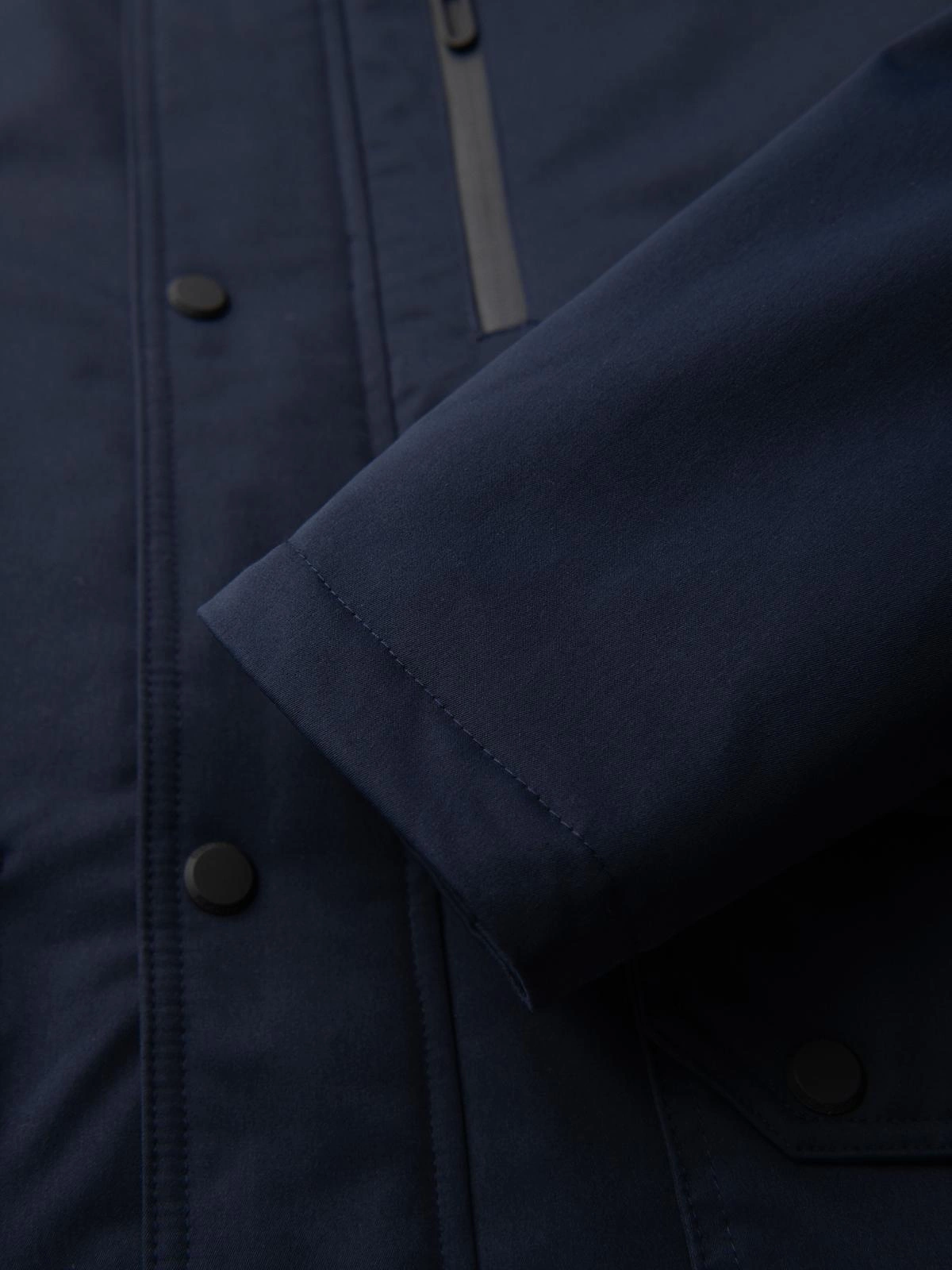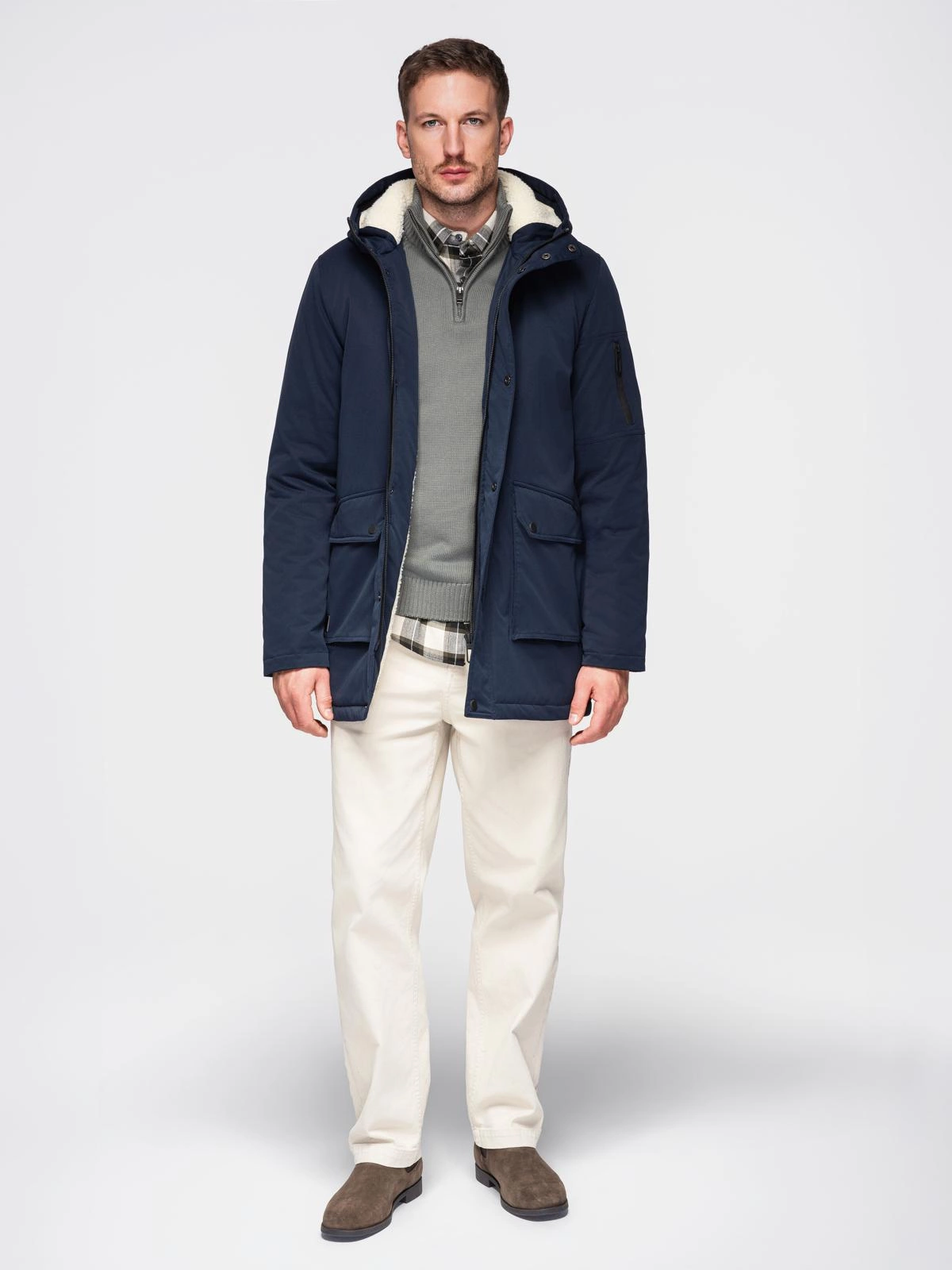 Men's long parka jacket with sheepskin - navy blue V2 OM-JAPJ-0316