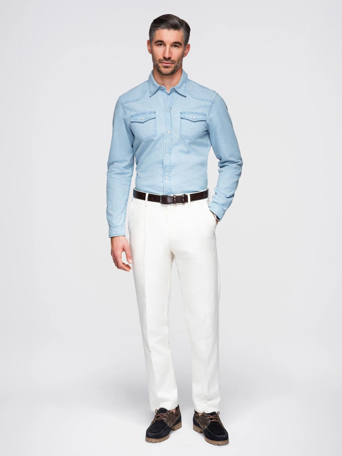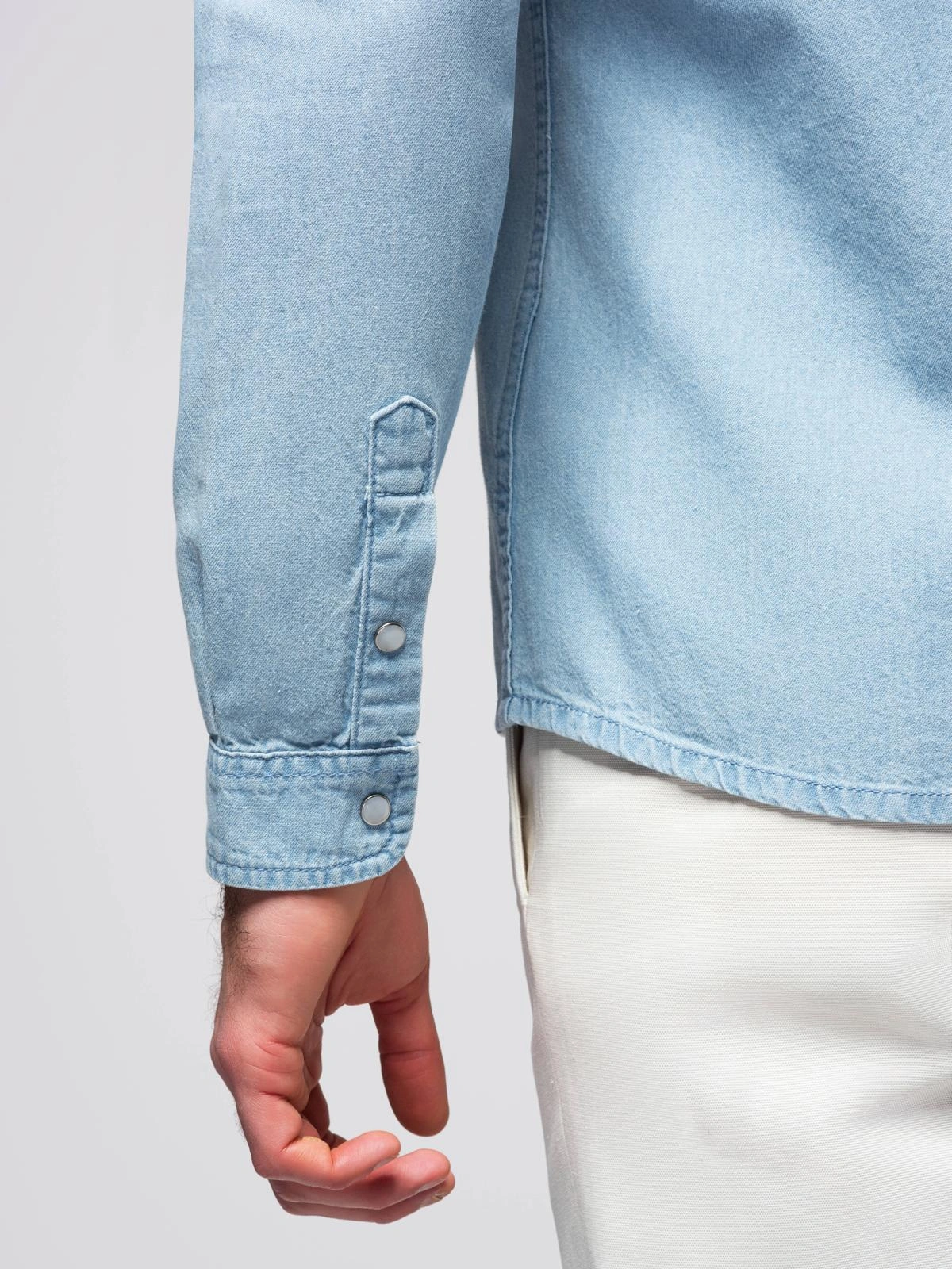 Men's denim snap shirt with pockets - light blue V1 OM-SHDS-0210