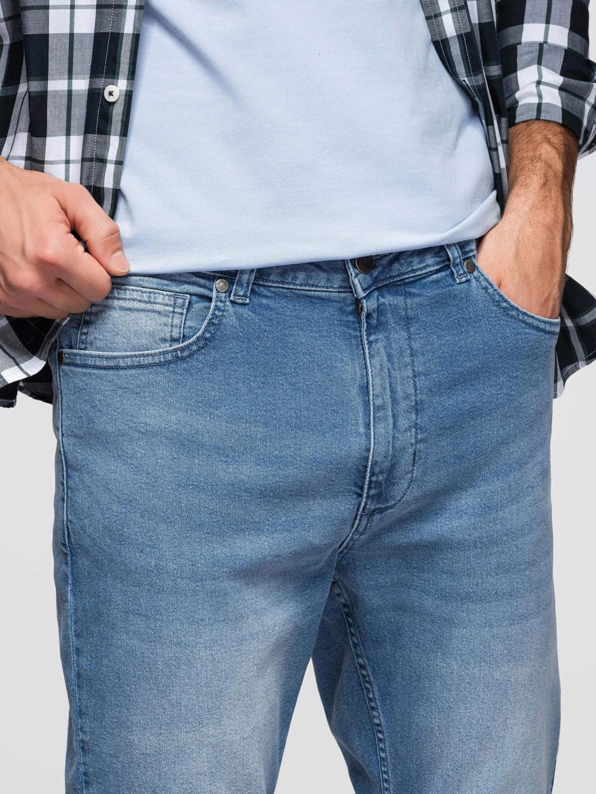 CARROT men's denim pants with rubbing - light blue V1 OM-PADP-0253