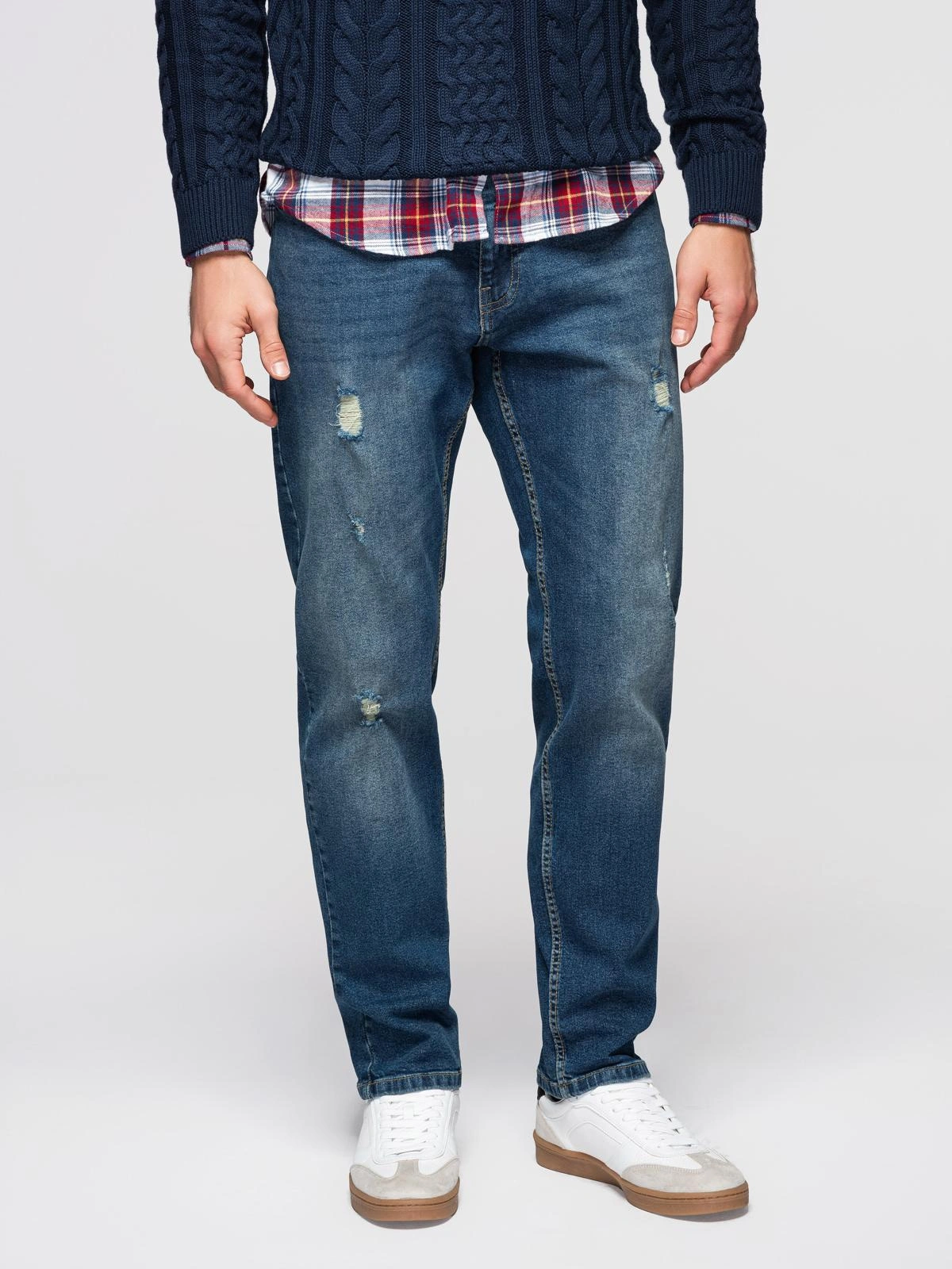 Men's REGULAR FIT denim pants with rubbing - dark blue V2 OM-PADP-0254