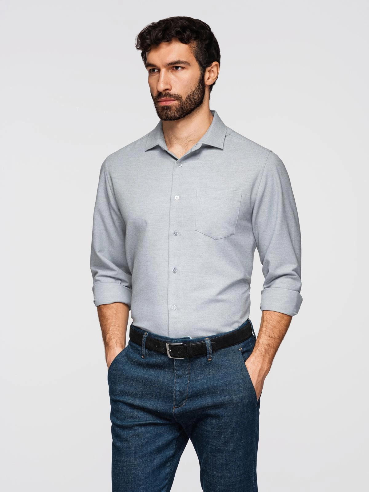 Men's classic regular fit shirt - grey melange V2 K694