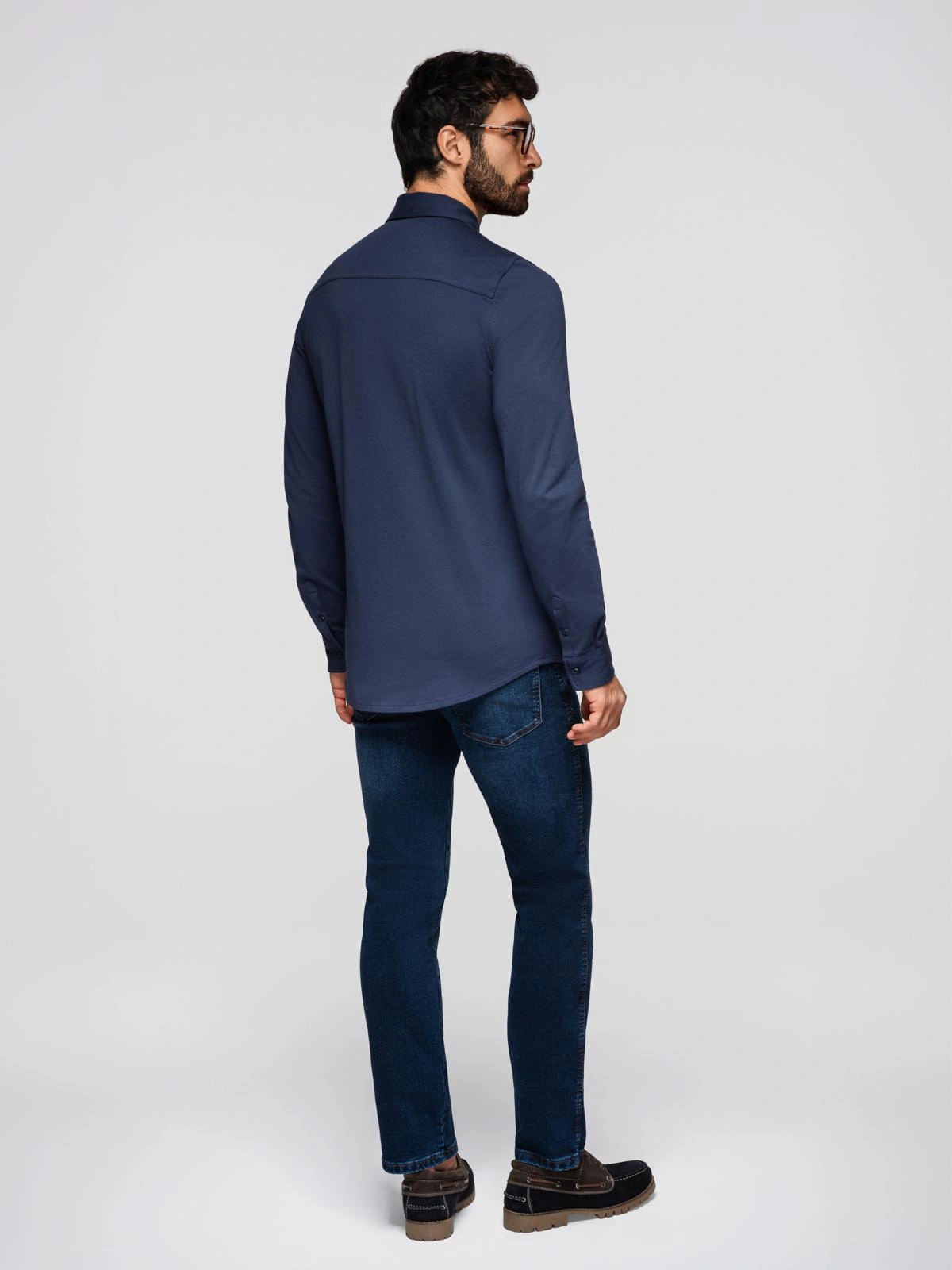Men's REGULAR cotton shirt with contrasting embroidery - navy blue V2 K697