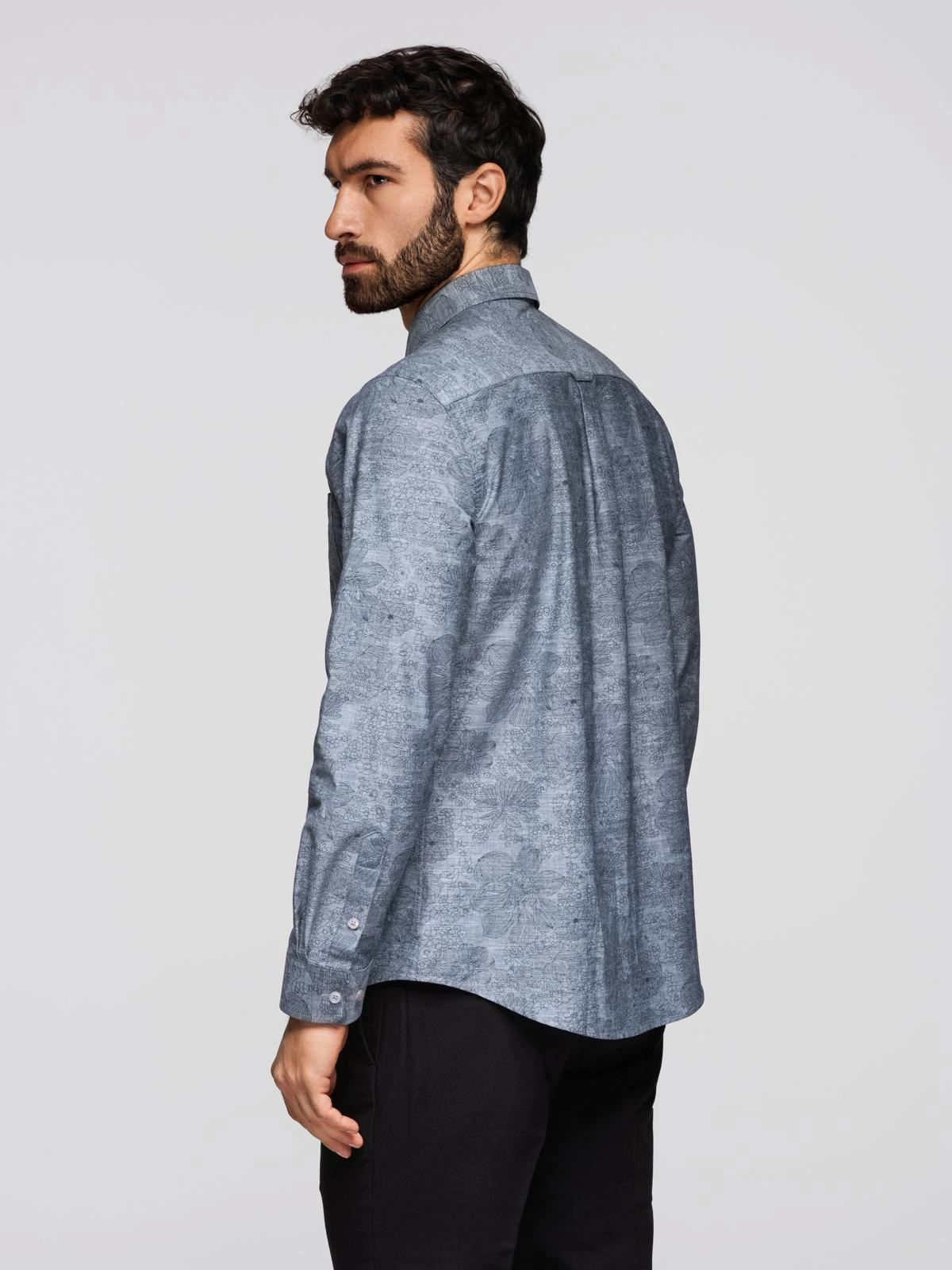 Classic flannel men's floral cotton shirt - grey V3 K701