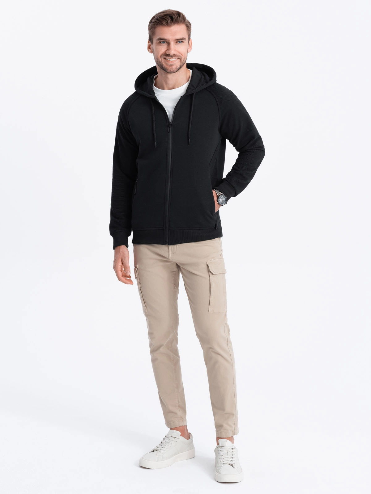 Men's unbuttoned hooded sweatshirt - black V5 OM-SSZP-0124