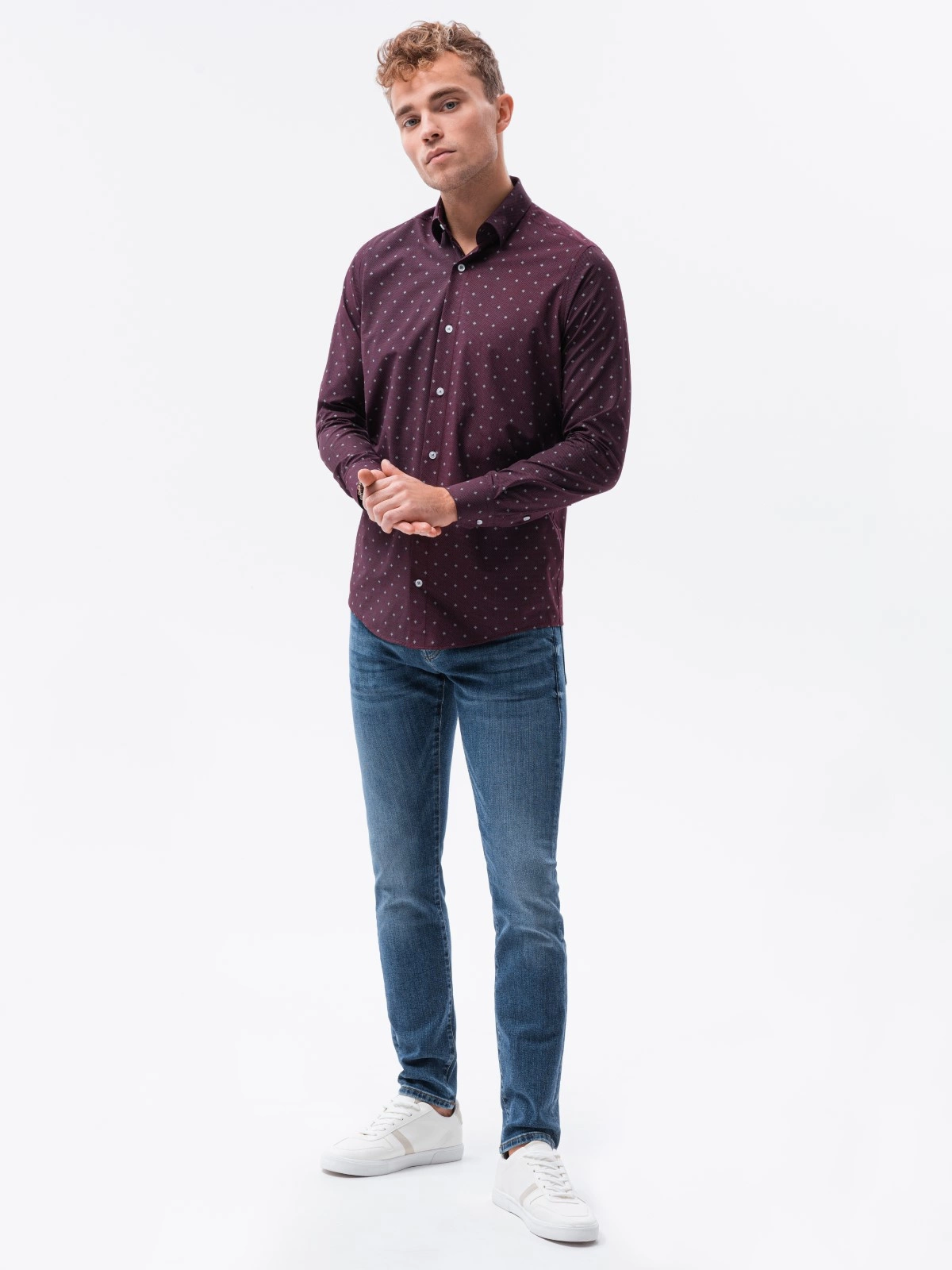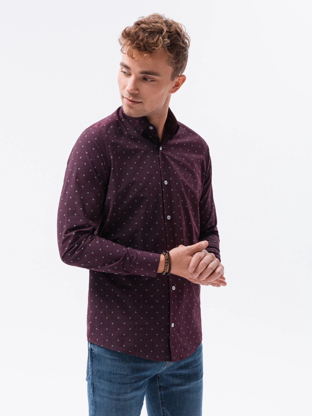Men's elegant shirt with long sleeves - dark red K463