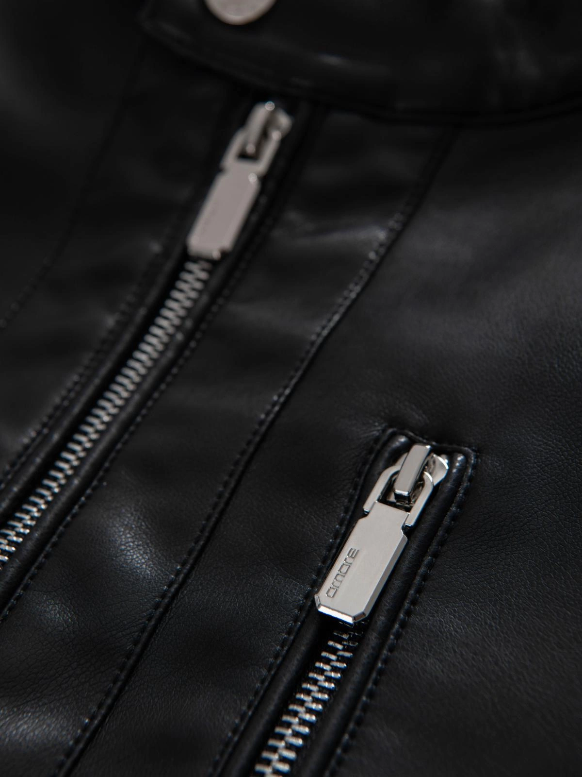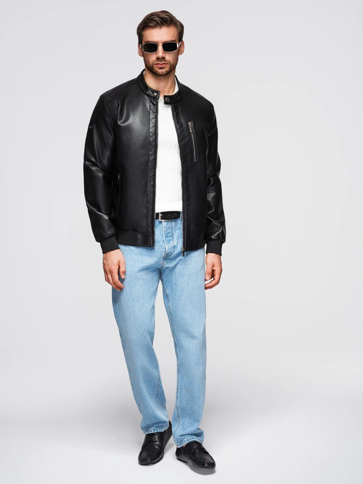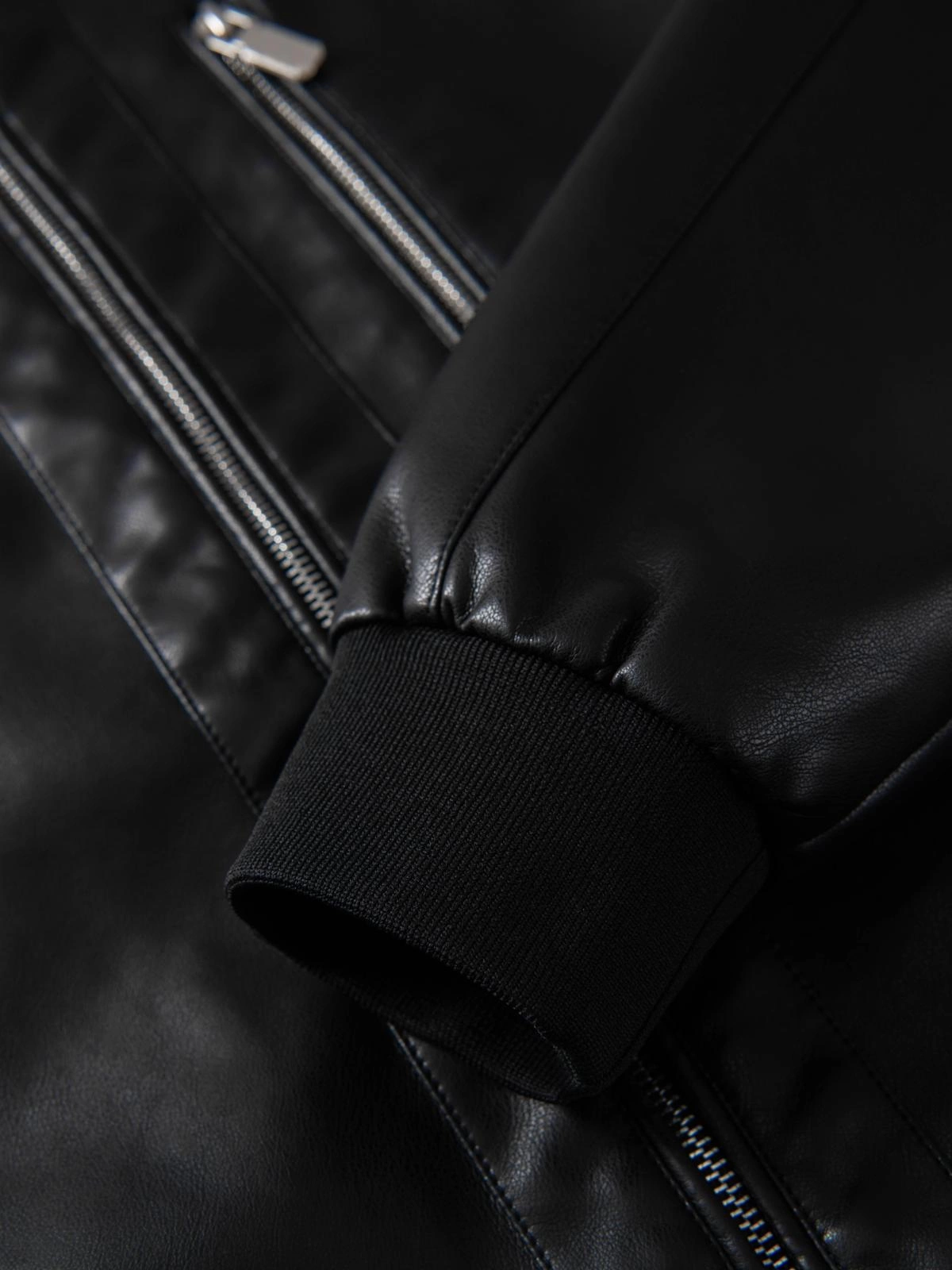 Vyriška dirbtinės odos striukė su briaunuotais kraštais - juoda V2 OM-JAFL-0109