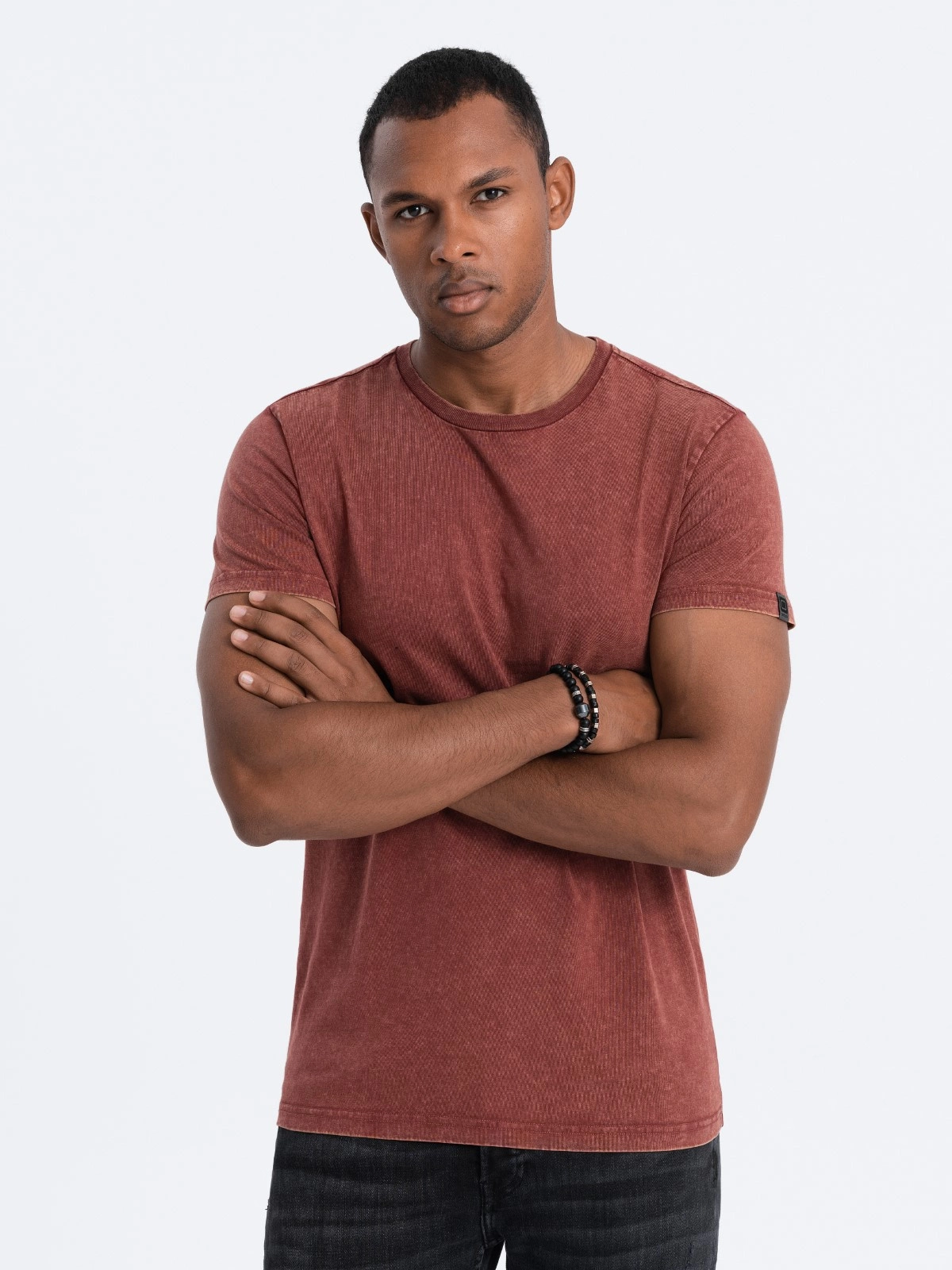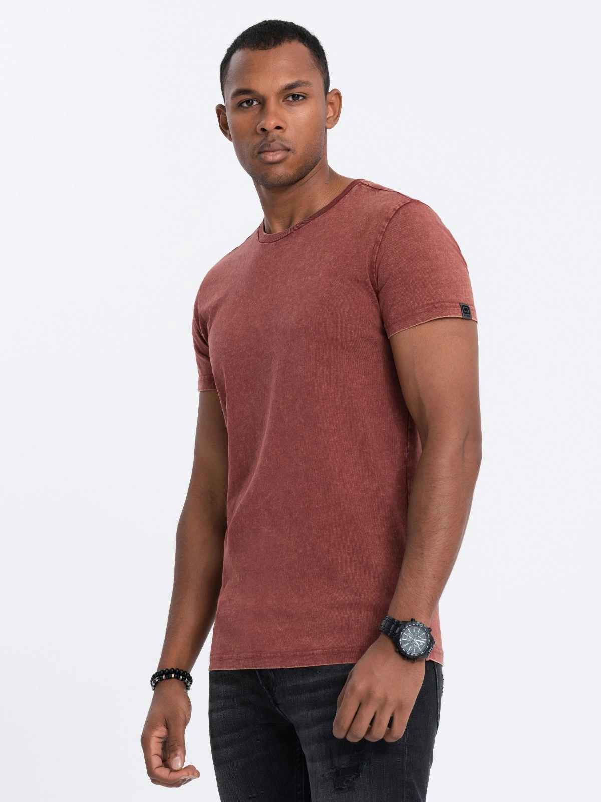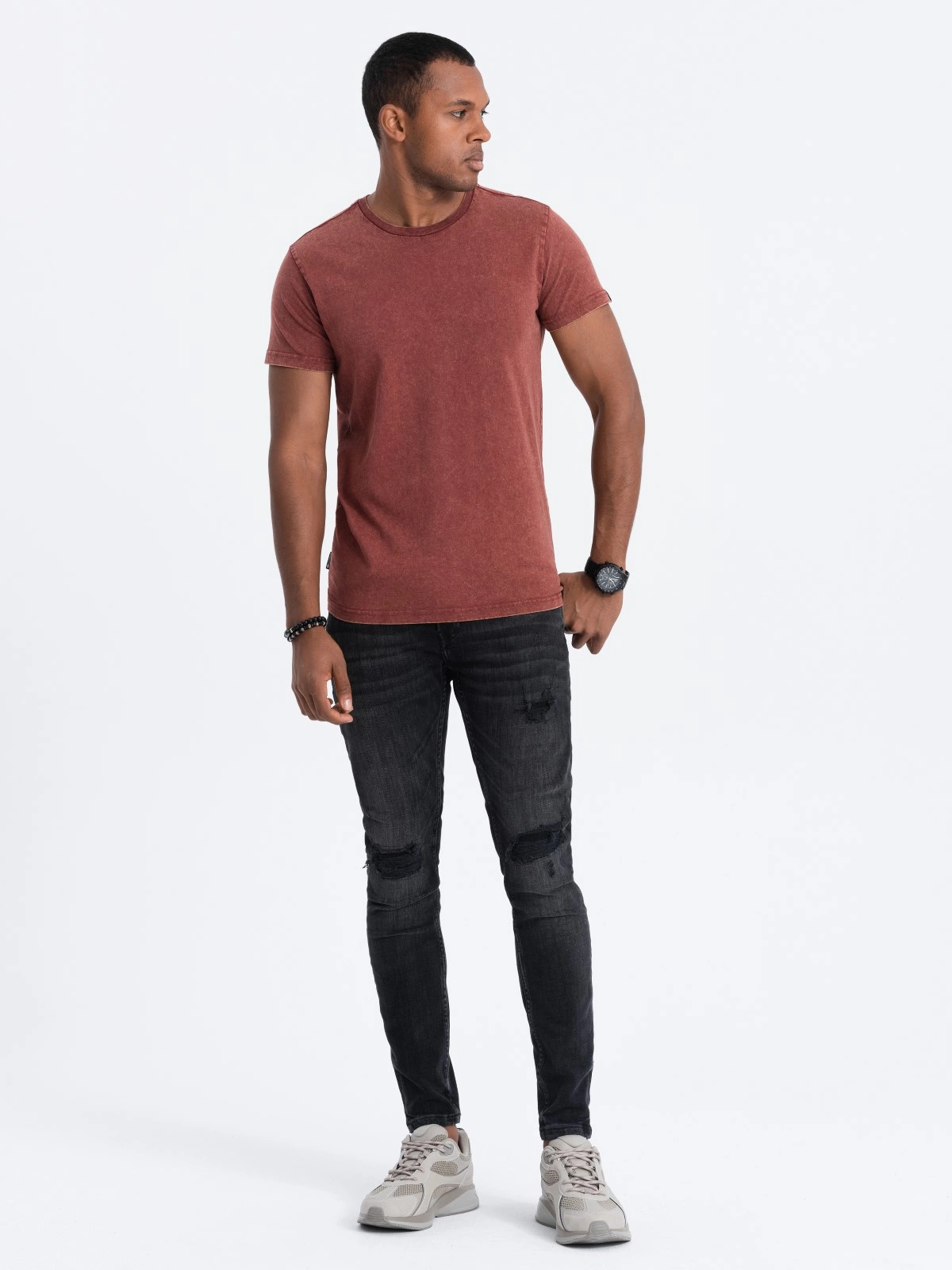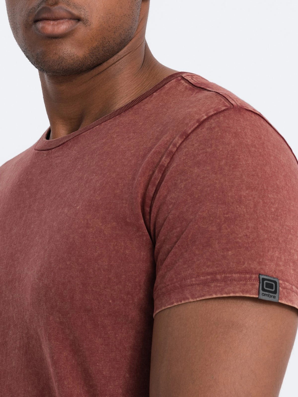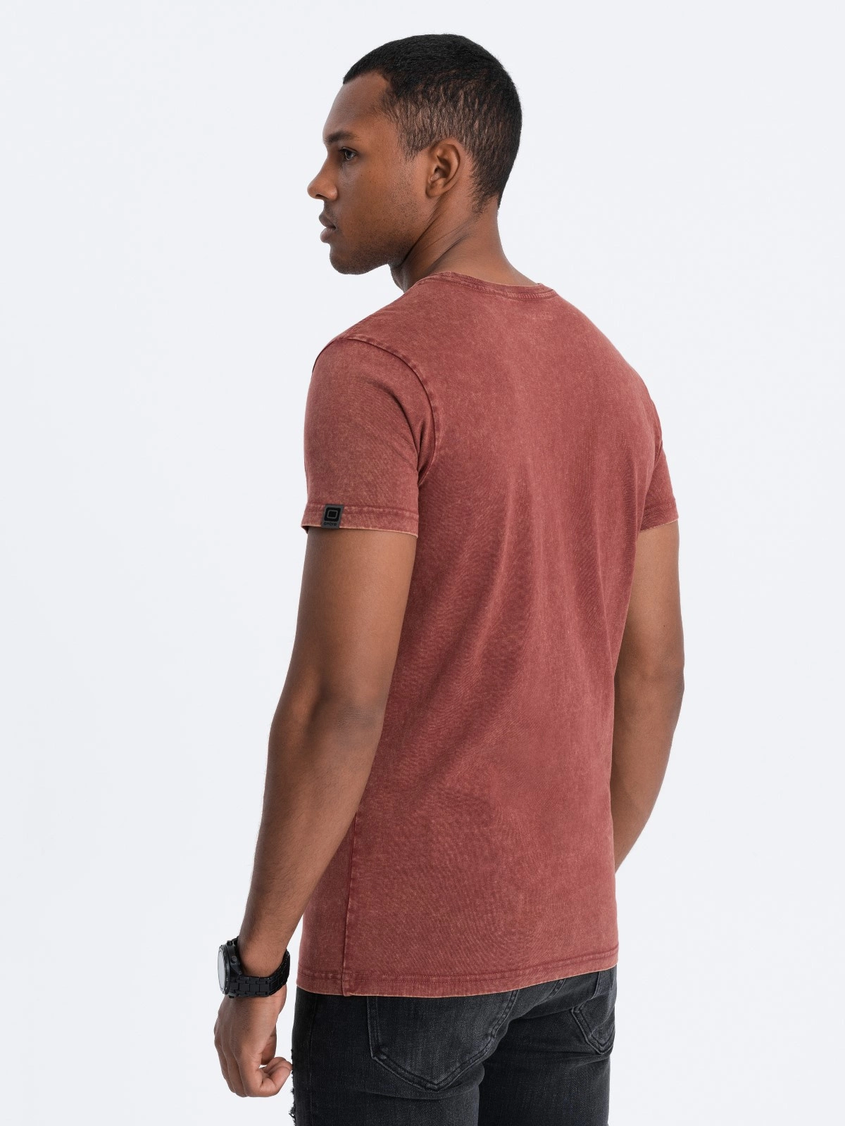 Vyriški marškinėliai su ACID WASH efektu - raudoni V3 S1638