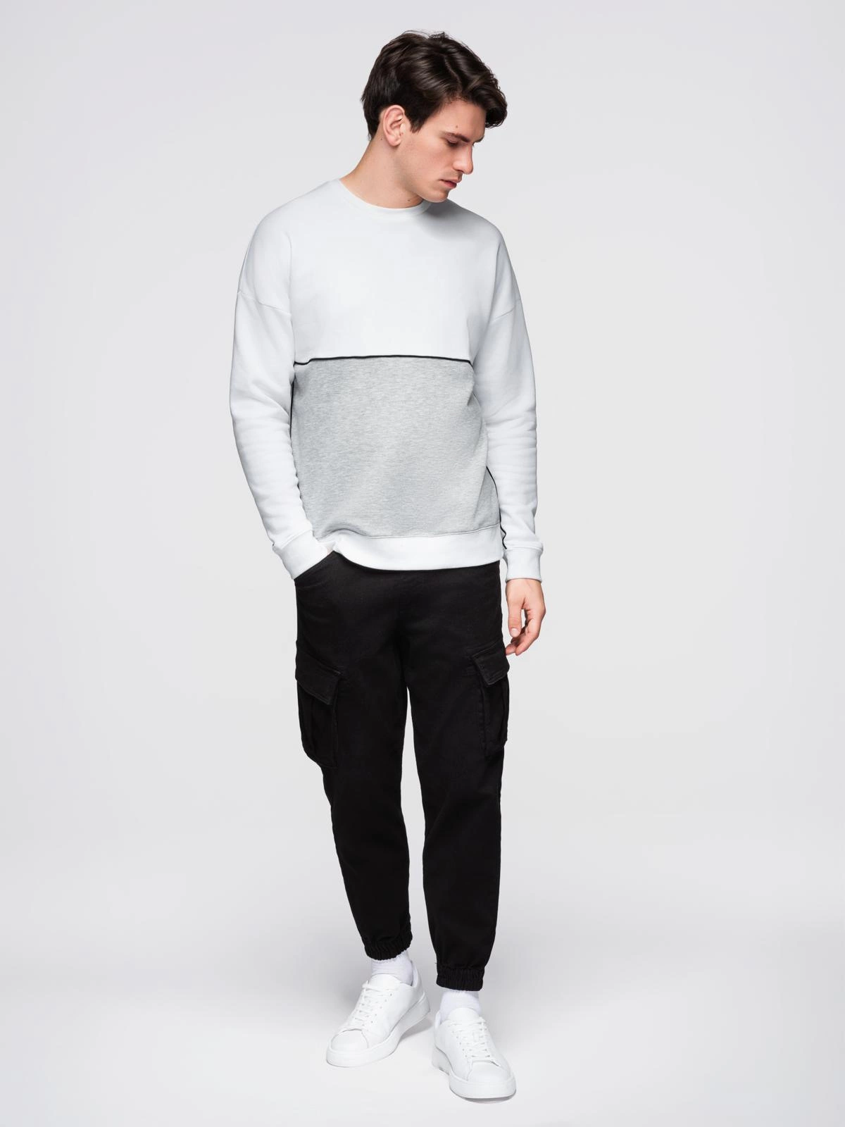 Vyriški kontrastingų spalvų marškinėliai OVERSIZE - baltos ir pilkos V1 OM-SSNZ-0130