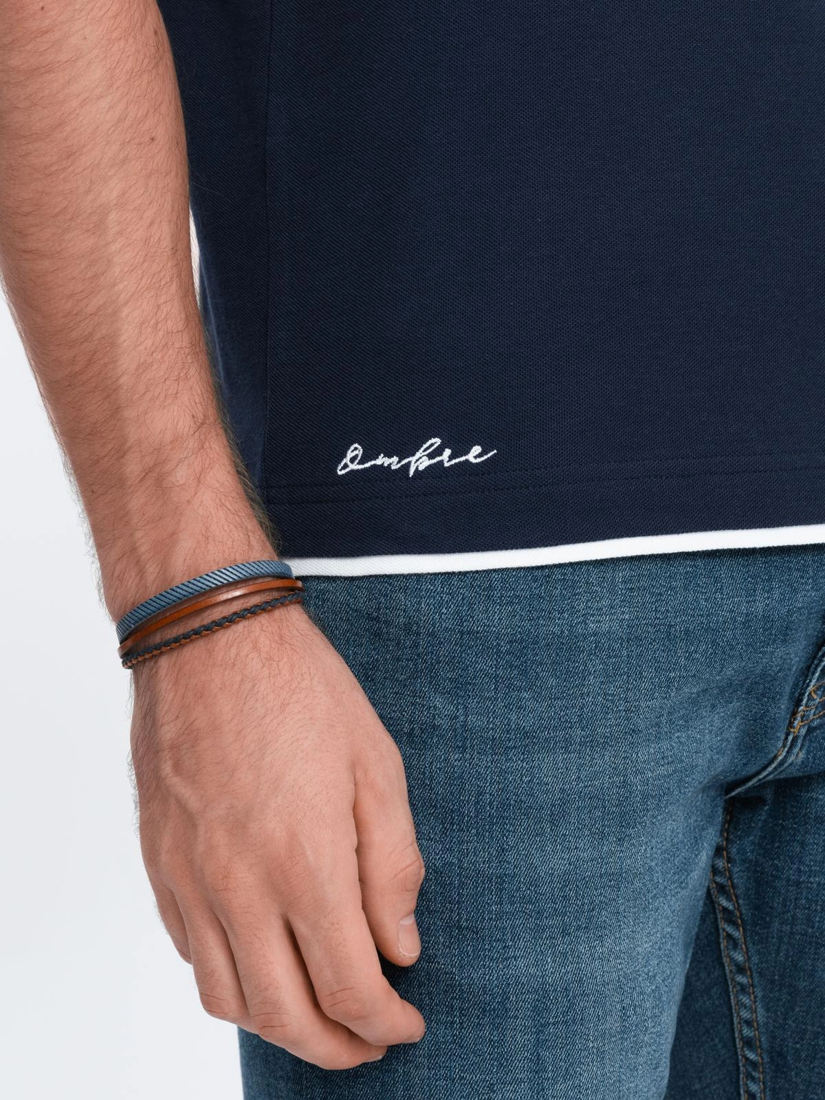 Vyriški medvilniniai polo marškinėliai su kontrastiniu apvadu - tamsiai mėlyni V4 OM-POSS-0113