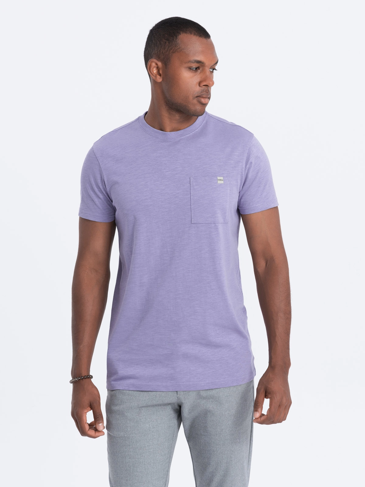 Vyriški trikotažiniai marškinėliai su kišenėmis - violetiniai V1