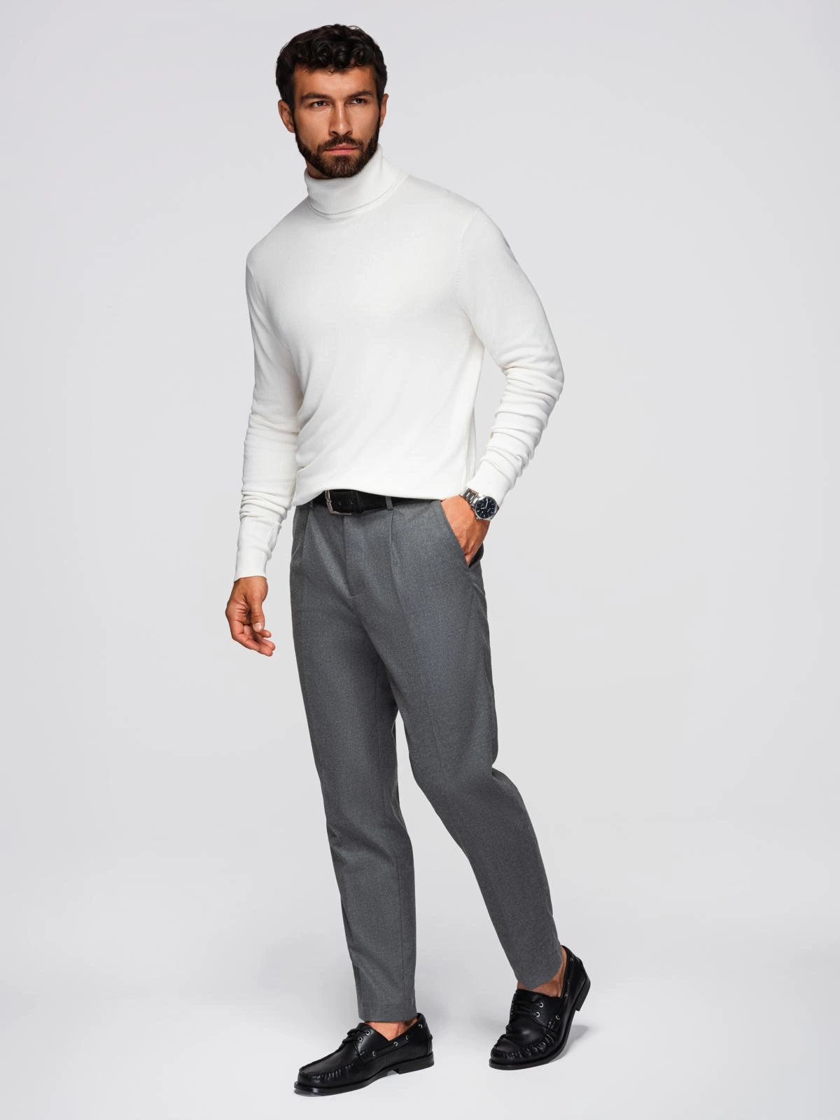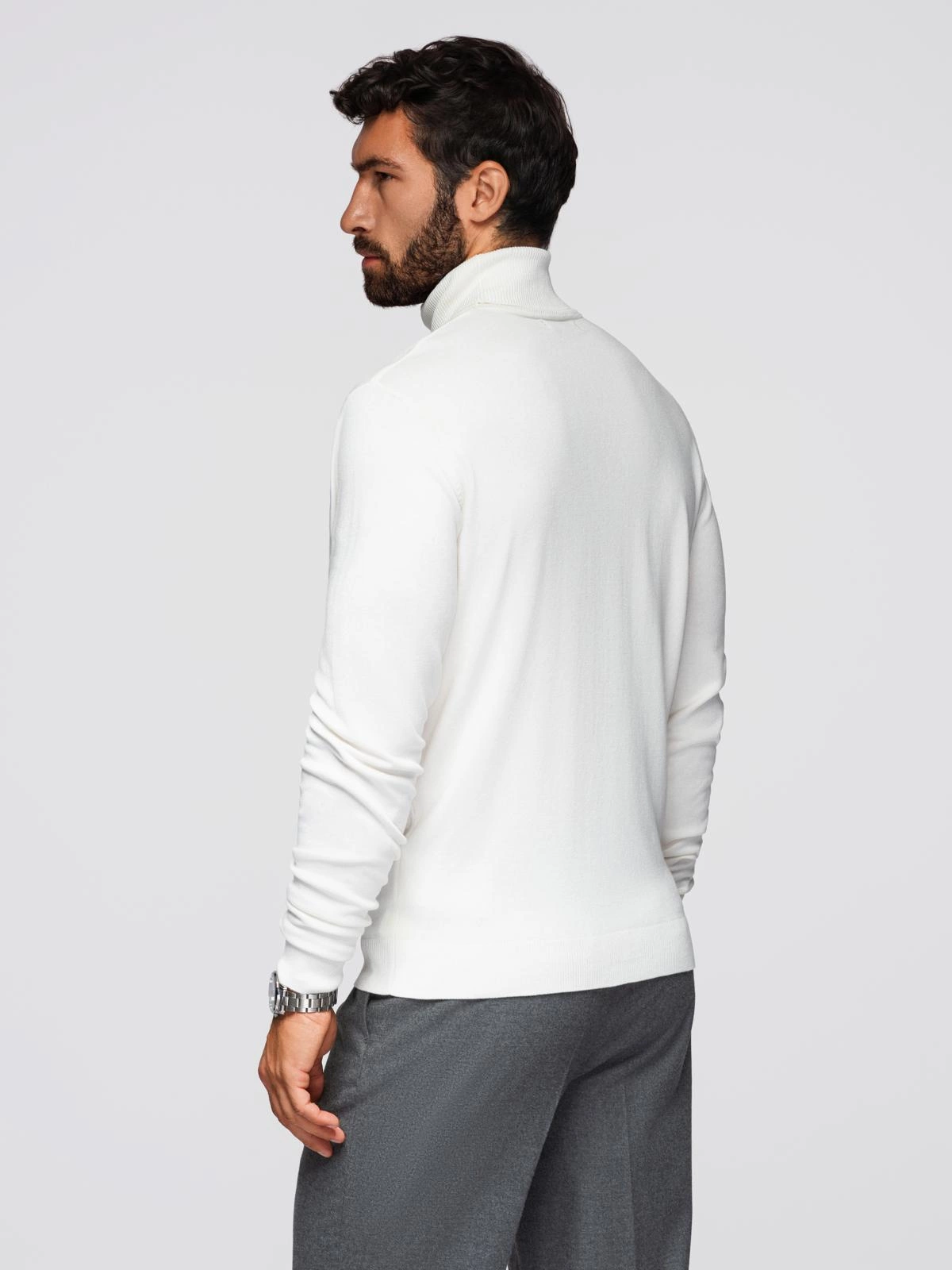 Vyriškas megztas prigludęs golfas su viskoze - ecru V3 OM-SWTN-0101