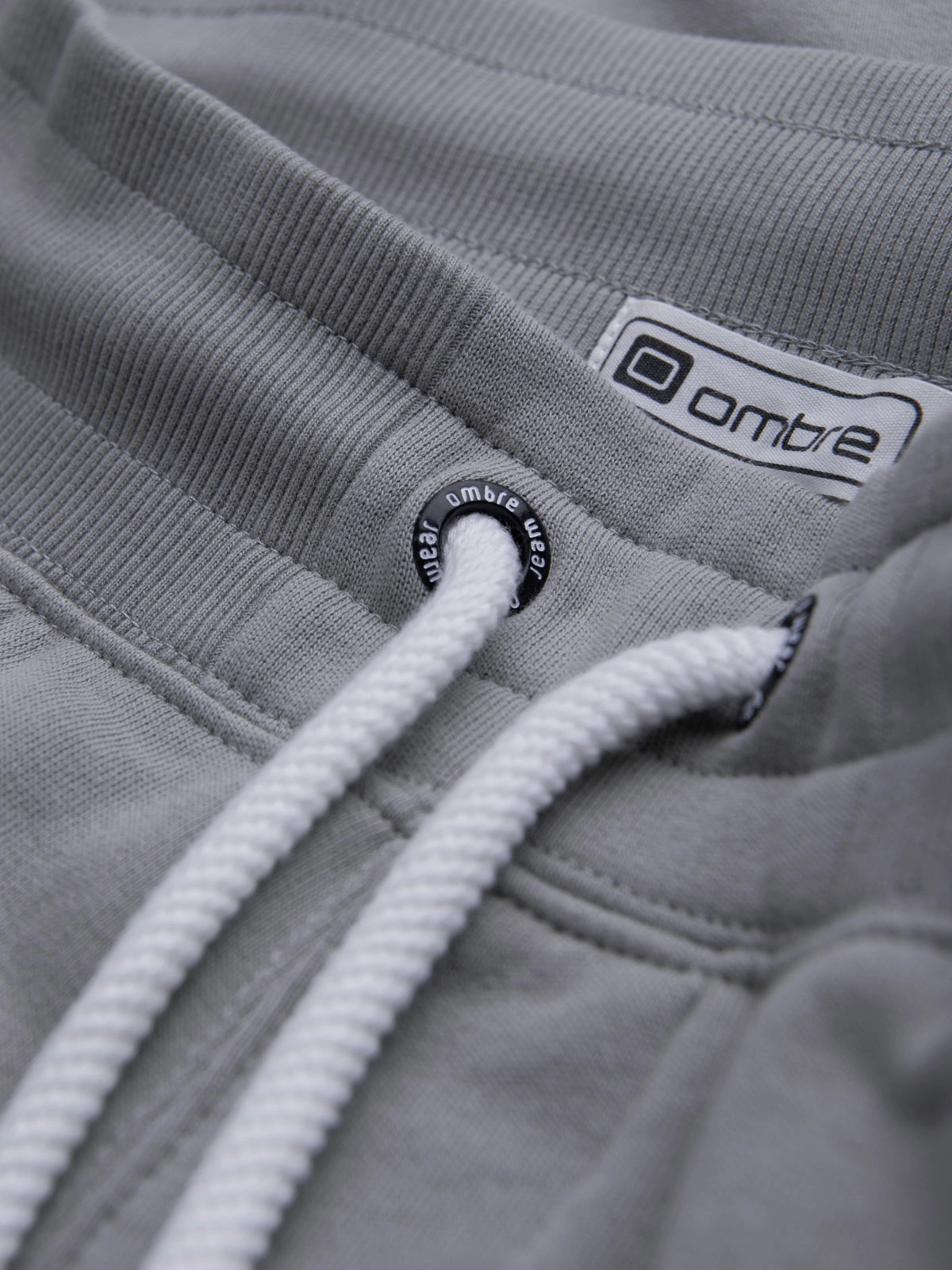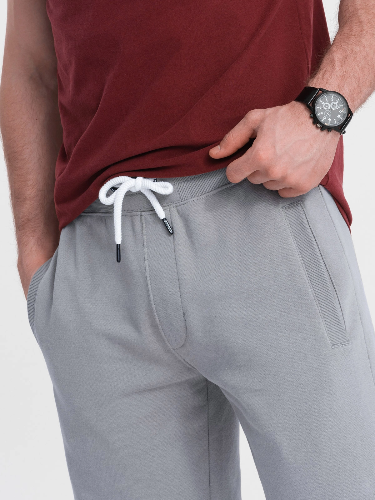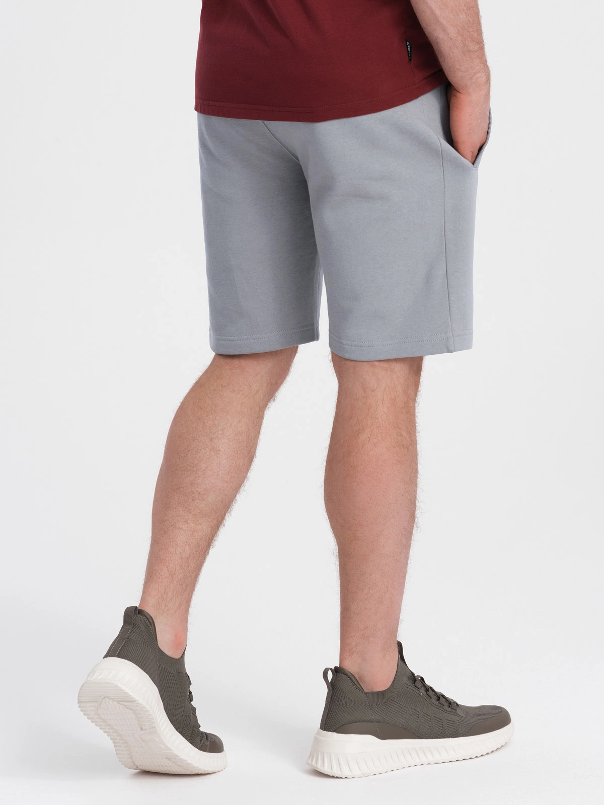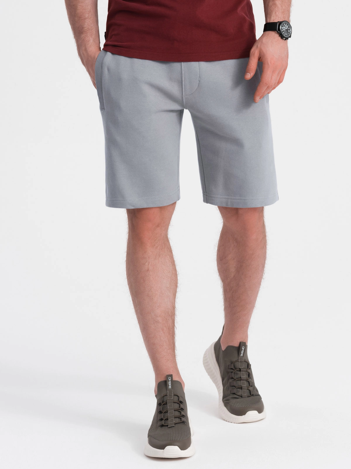 Vyriški megzti šortai su raišteliu juosmenyje ir kišenėmis - pilki V8 OM-SRBS-0139