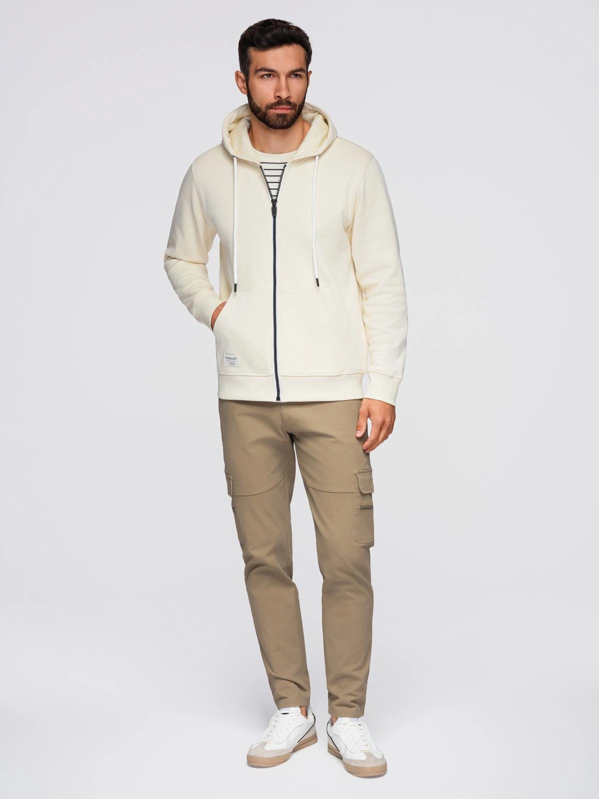 Vyriškas BASIC džemperis su užtrauktuku ir gobtuvu - kreminis V11 OM-SSBZ-0178