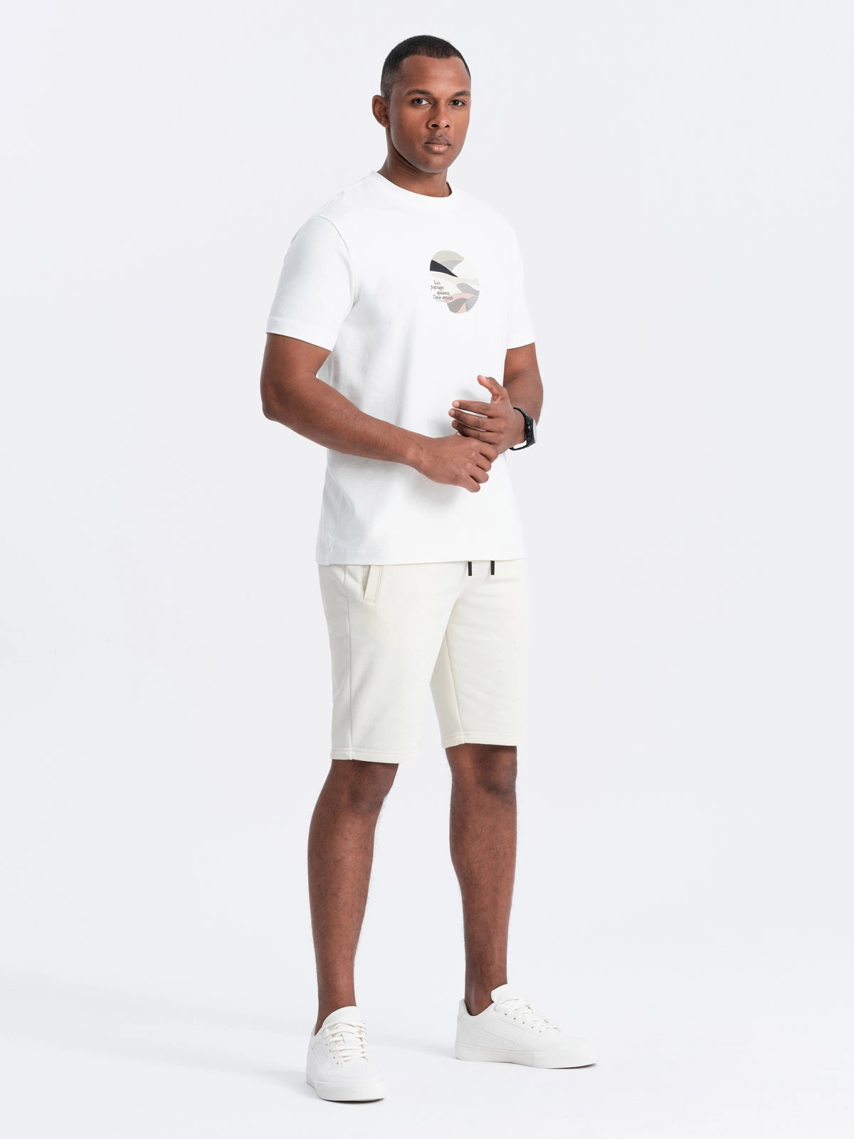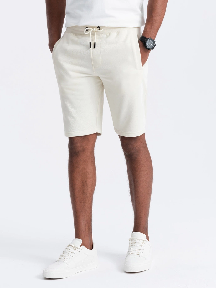 Vyriški BASIC šortai iki kelių - kreminės spalvos V5 OM-SRBS-0149