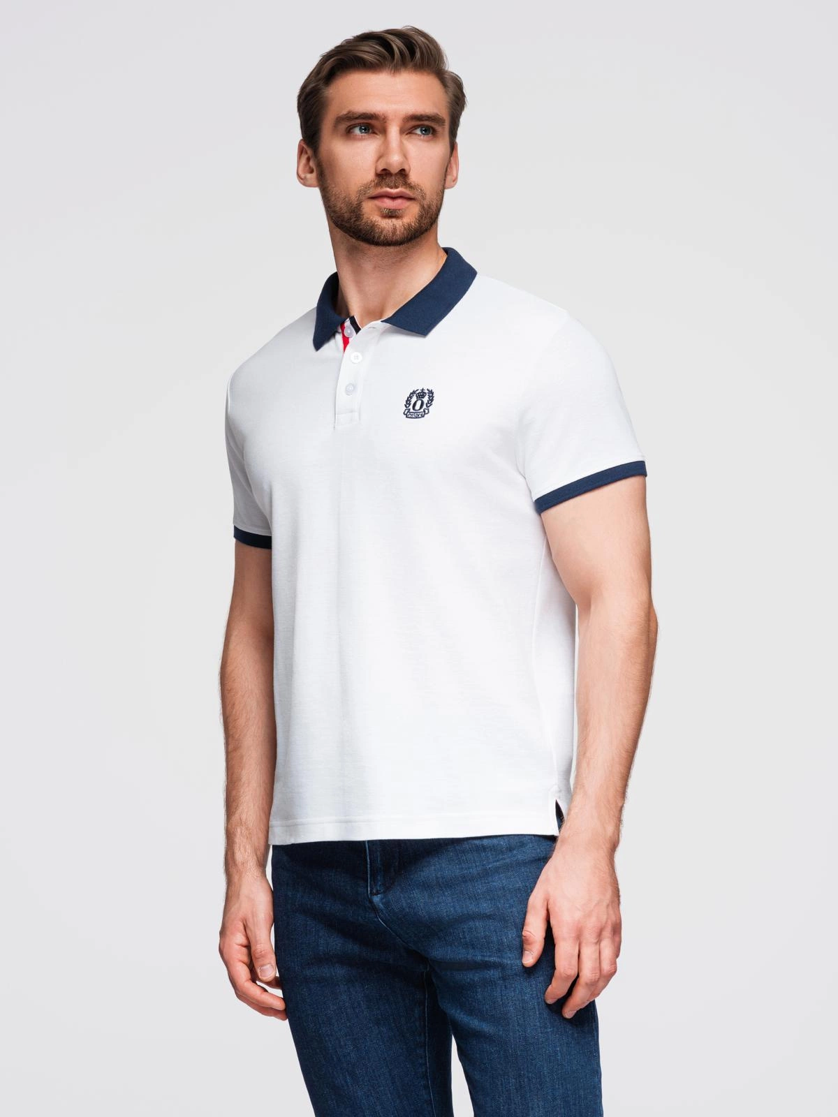 Vyriški polo marškinėliai su spalvotais akcentais - balti V2 OM-POSS-0105