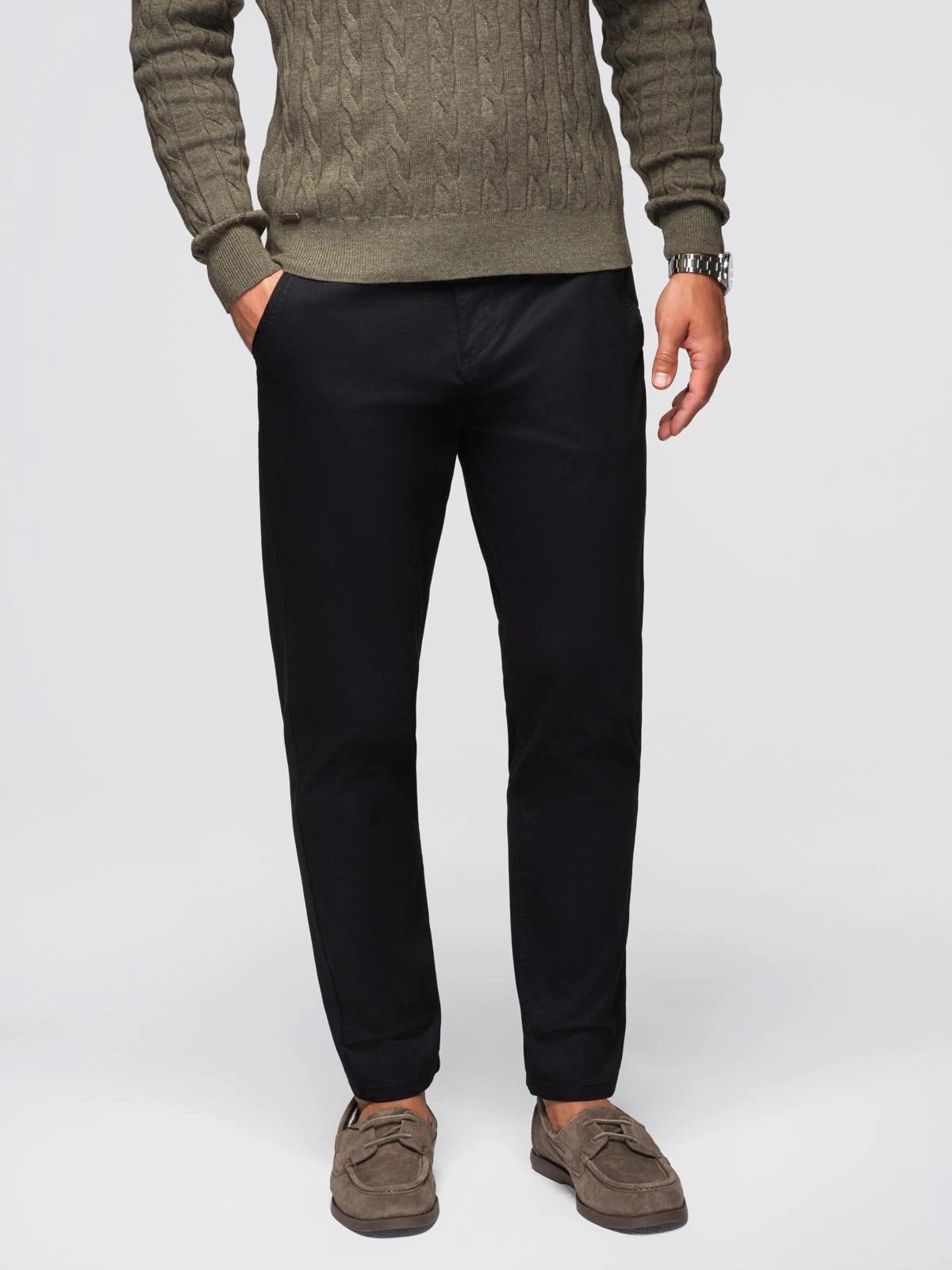 Vyriškos chino kelnės su dekoratyvine juosta - juodos V1 OM-PACP-0118